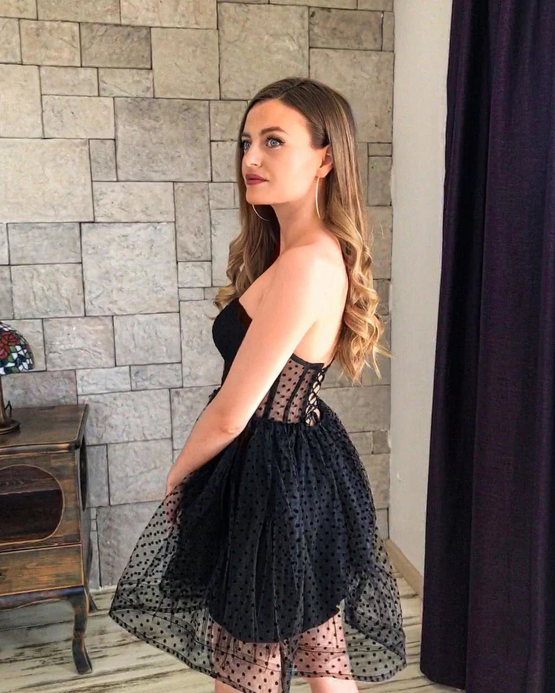 A Line Spaghetti Straps Sweetheart Satin Tulle Ruffles Short/Mini Homecoming Dress