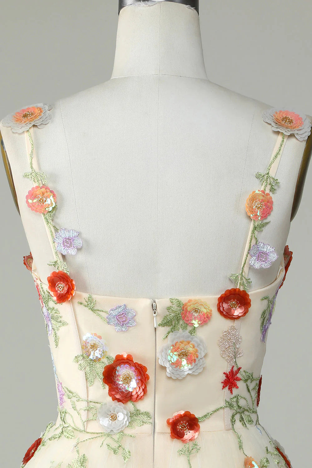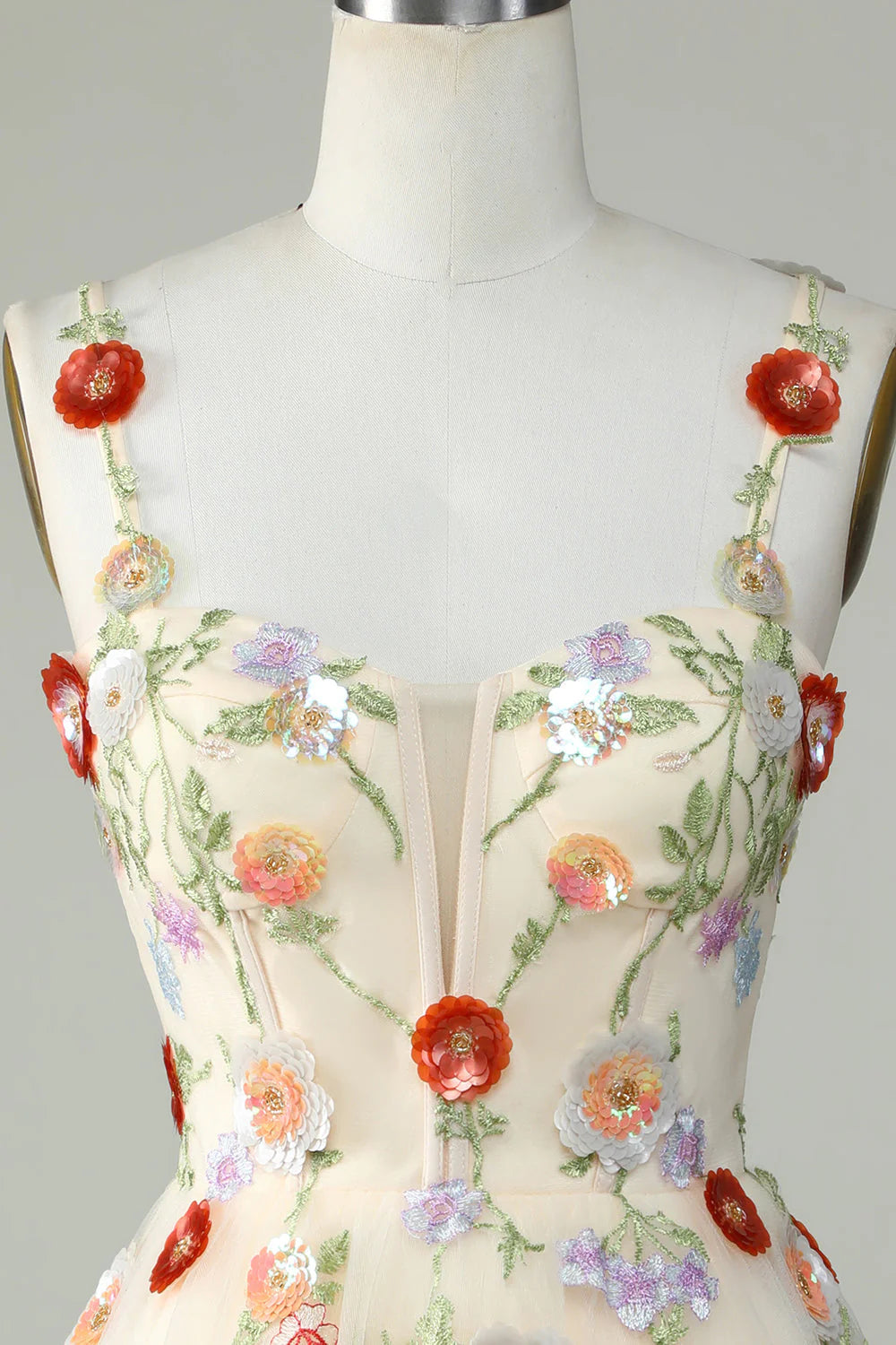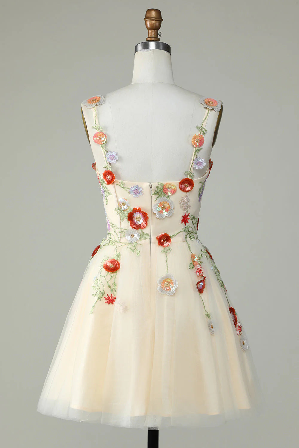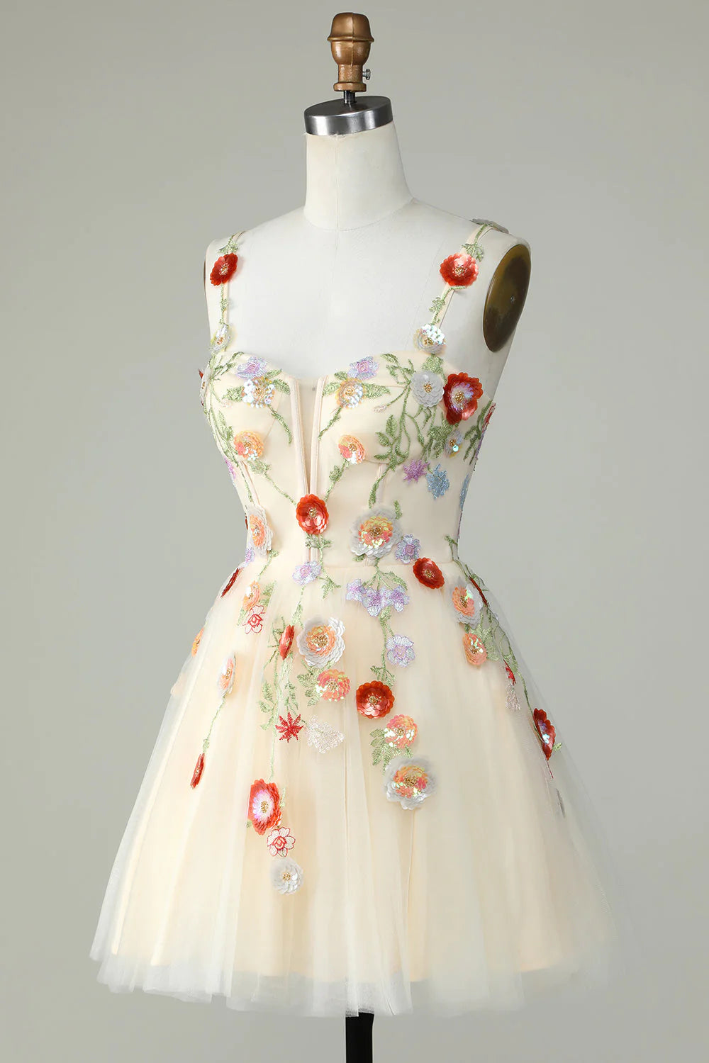 A Line Tulle Spaghetti Straps Homecoming Dresses With 3D Flower