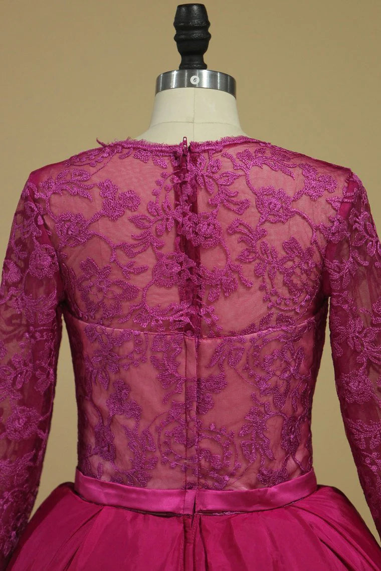 Asymmetrical Long Sleeves Taffeta & Tulle Party Dresses