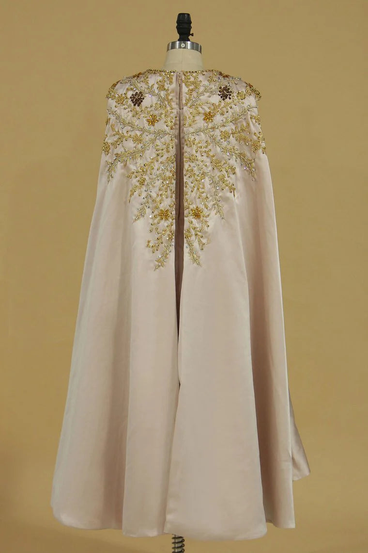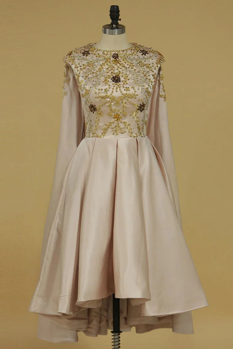Asymmetrical Party Dresses Scoop Beaded Bodice Satin