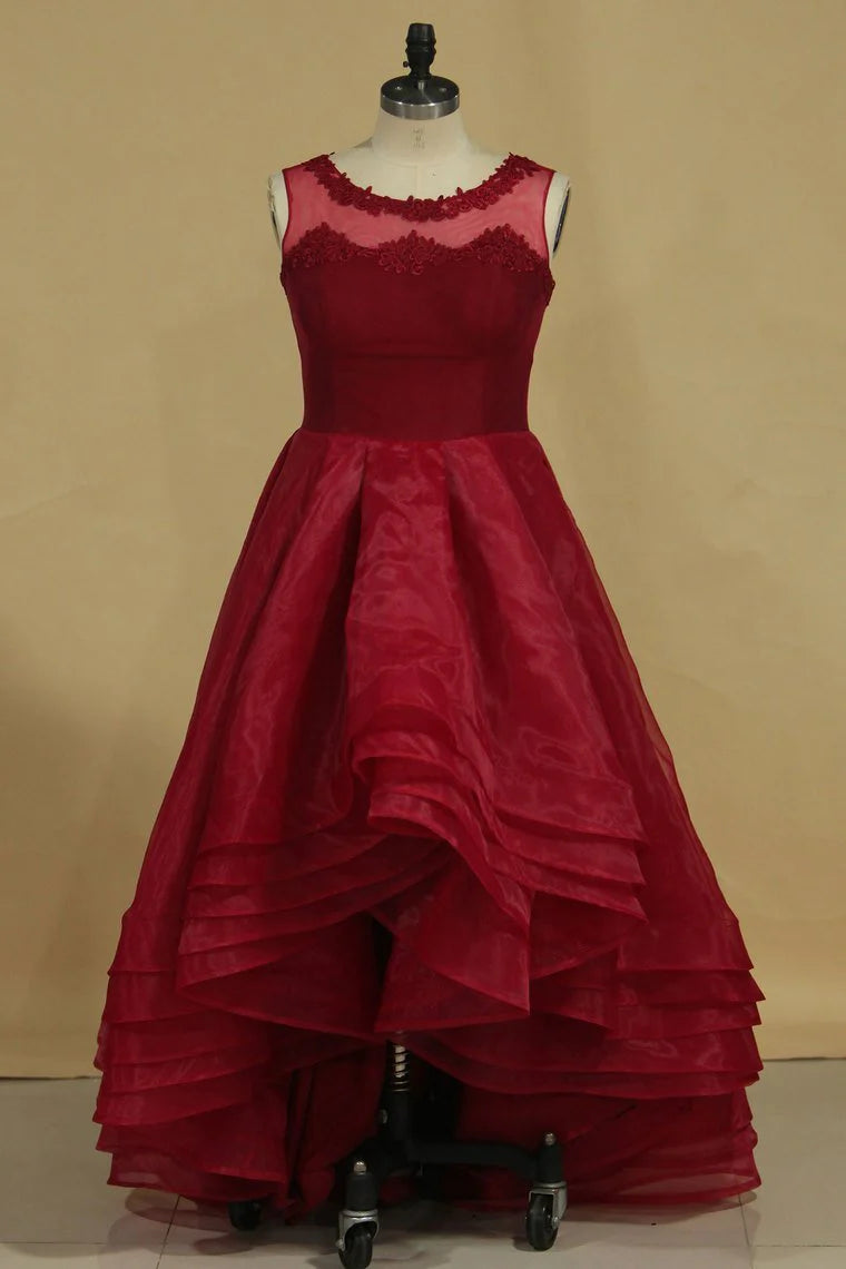 Asymmetrical Scoop Party Dresses A Line Organza With Applique