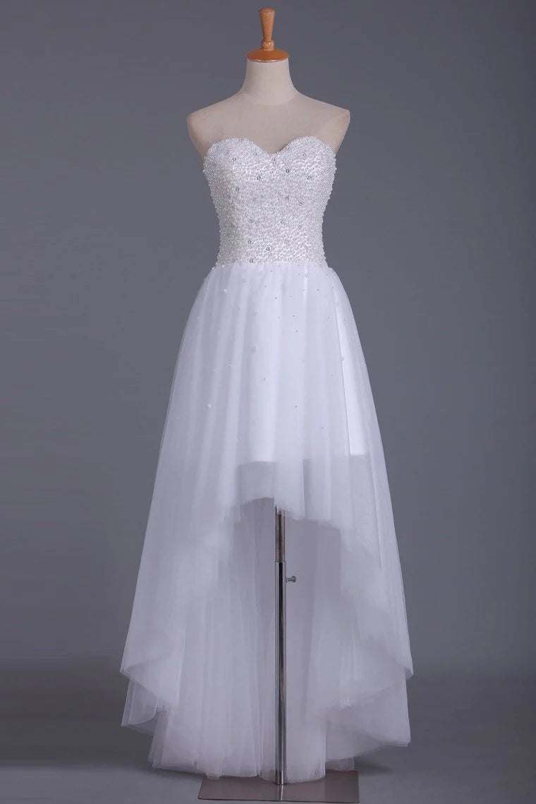 Asymmetrical Sweetheart Beaded Bodice Party Dresses A Line Tulle