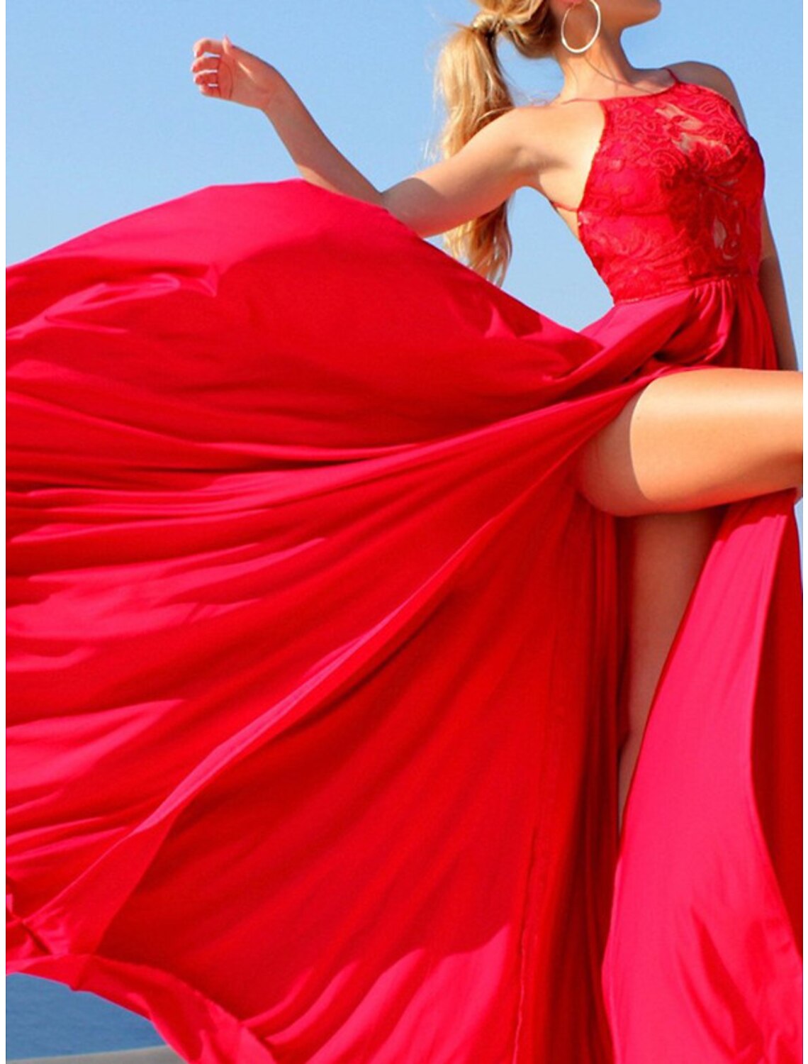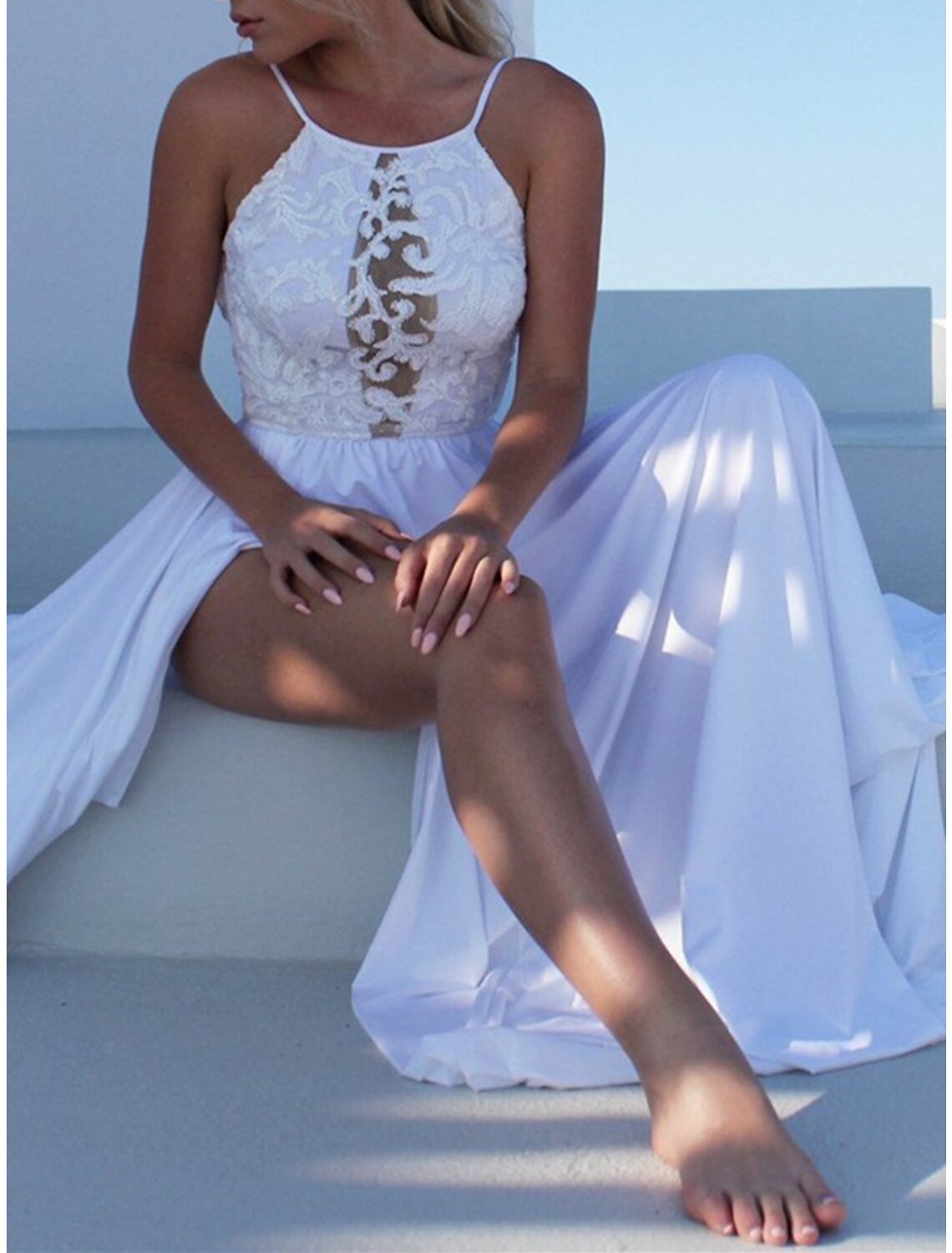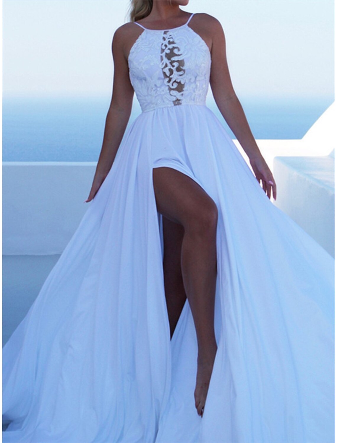 Beach Boho Wedding Dresses A-Line Halter Neck Spaghetti Strap Sleeveless Floor Length Chiffon Bridal Gowns With Appliques Split Front