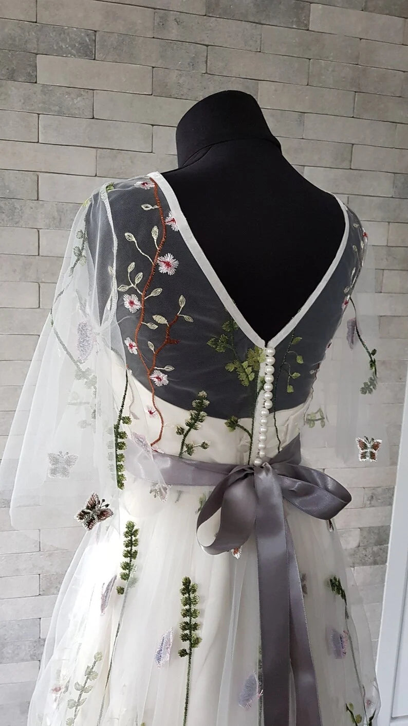 Beaira Beautiful White Tulle with Lace Long Wedding Party Dress White Tulle Prom Dress prom dress with long sleeves