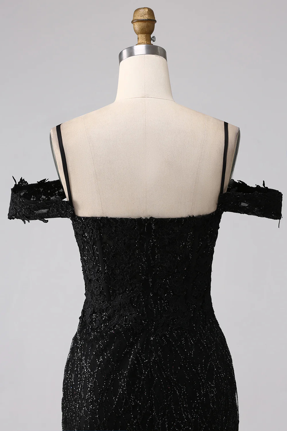Beaira Black Mermaid Cold Shoulder Long Prom Dress with Slit