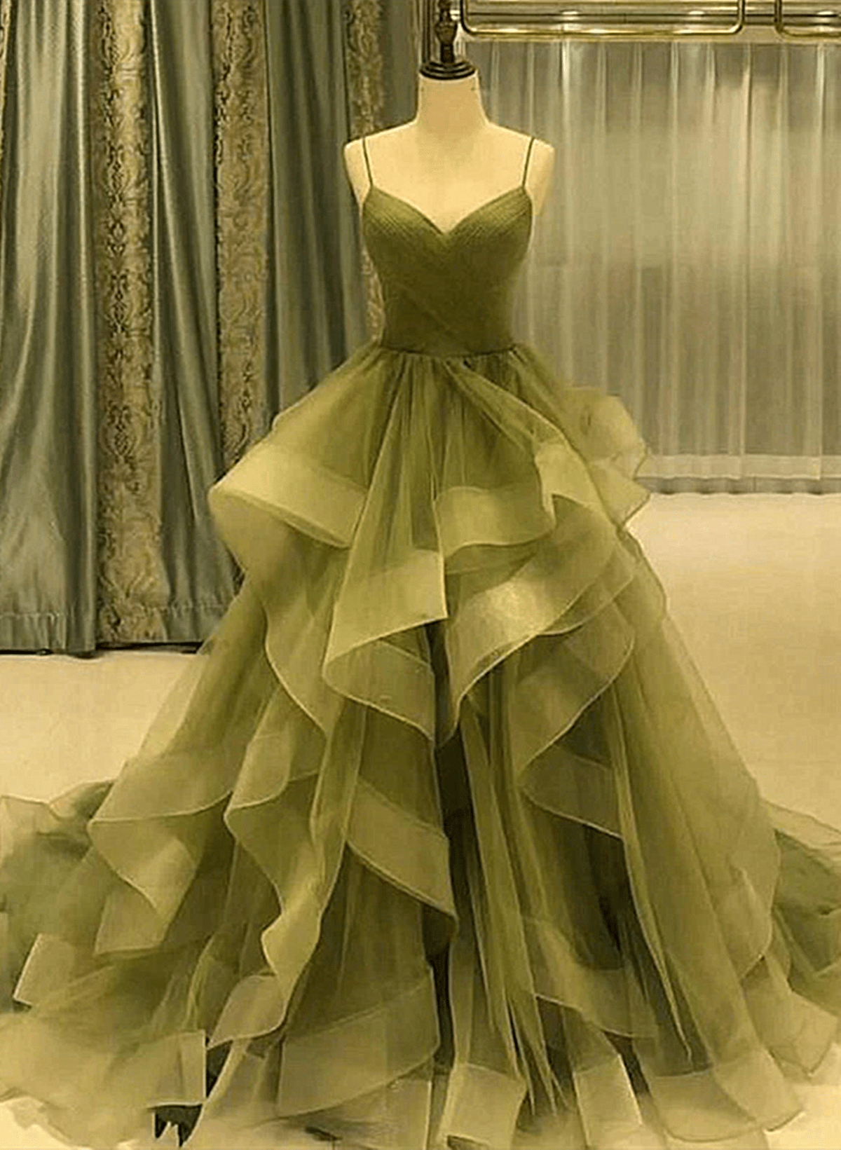 Beaira Green Layers Tulle Straps V-neckline Party Dress Green Long Formal Dress stores with prom dresses