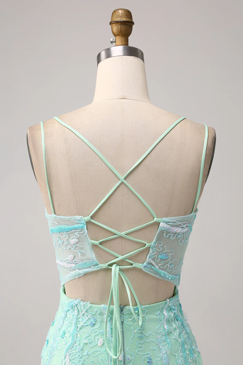 Beaira Green Mermaid Spaghetti Straps Sequins Long Prom Dress with Slit