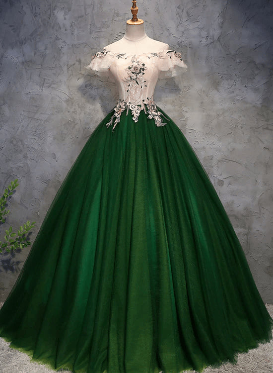 Beaira Green Off Shoulder Tulle with Flowers Green Long Sweet 16 Dress stores with prom dresses
