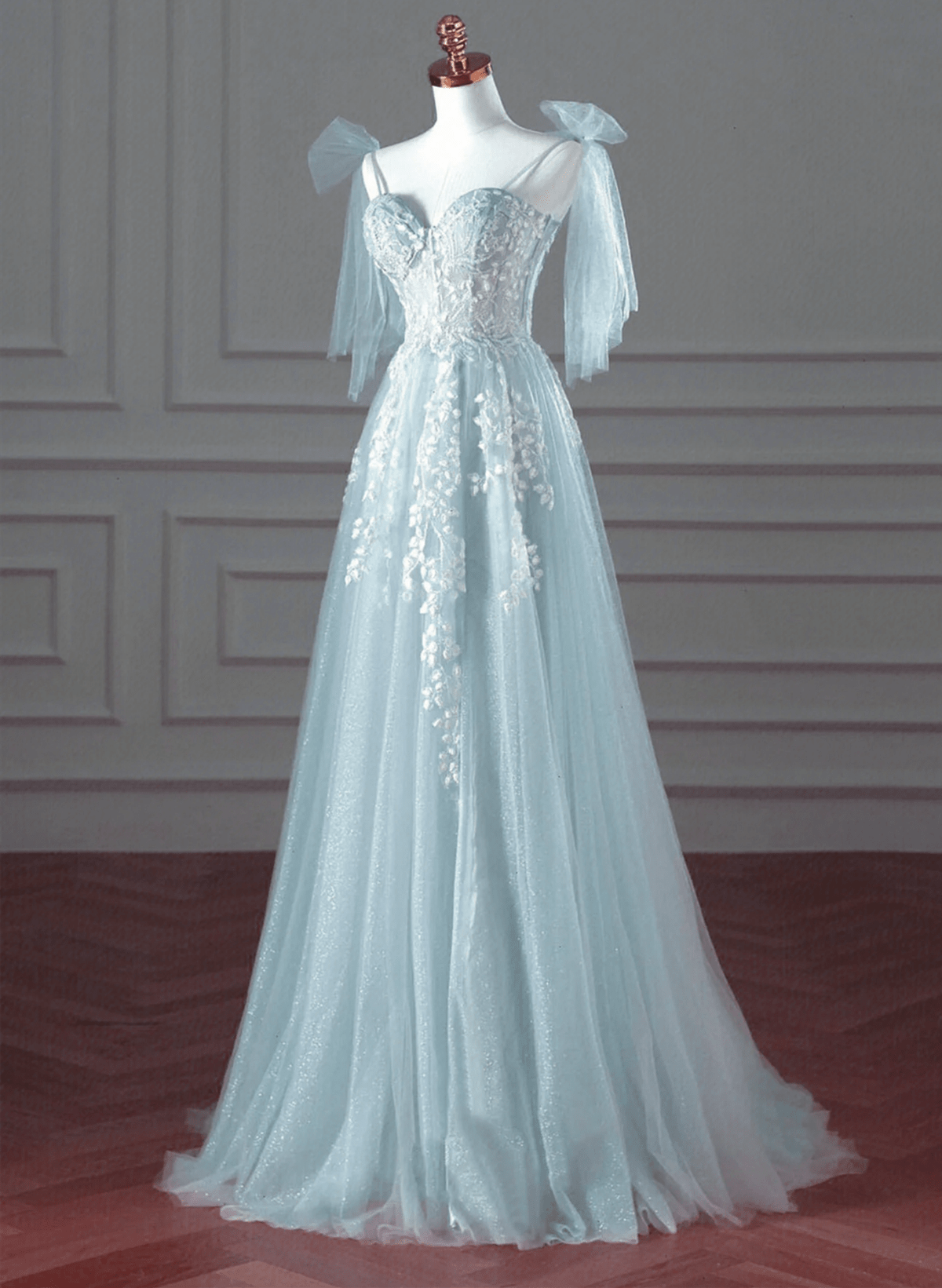 Beaira Lovely Mint Blue Tulle with Lace Applique Long Formal Dress Mint Blue Prom Dress prom dress with long sleeves