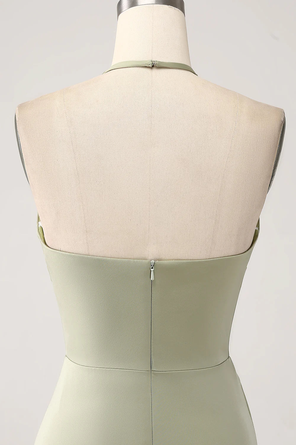 Beaira Sheath Pistachio V-Neck Beaded Long Prom Dress With Slit