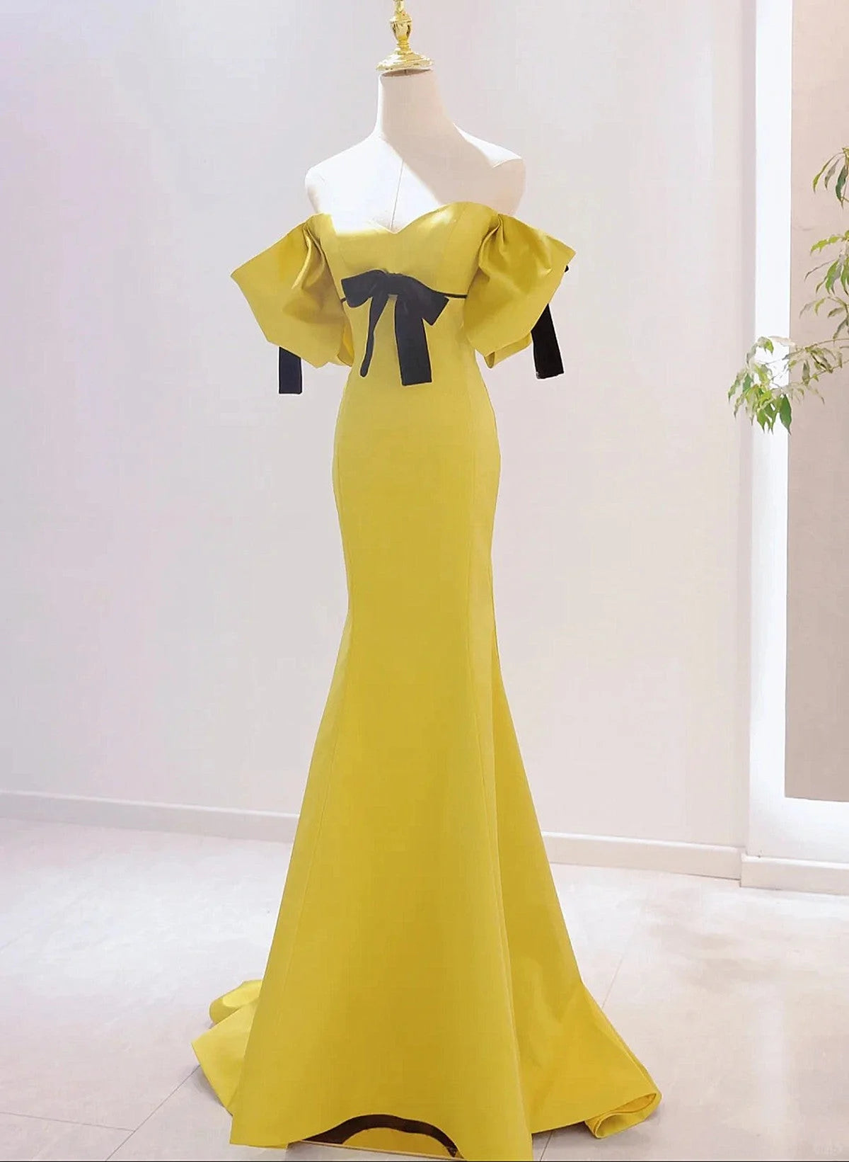 Beaira Yellow Mermaid Sweetheart Prom Dress Off Shoulder Yellow Evening Dress