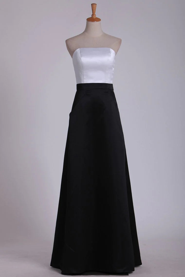 Bicolor Strapless Party Dresses A Line Floor Length Satin