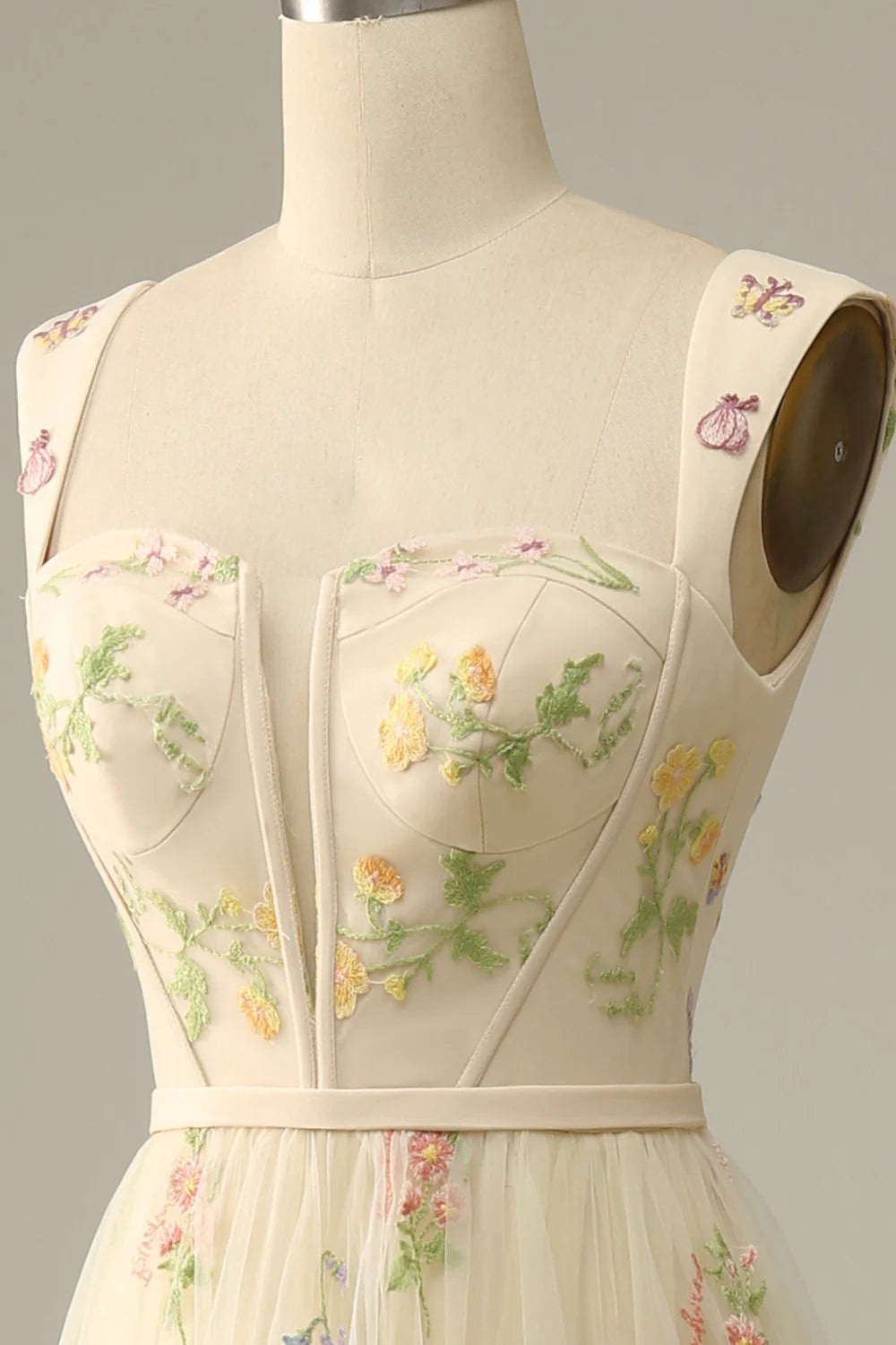 Champagne A-Line Embroidery Prom Dress