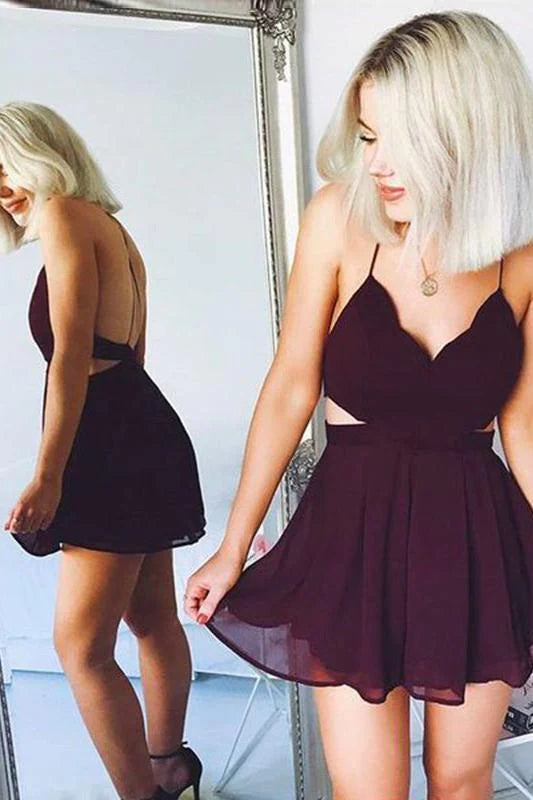 Cheap Open Back Homecoming Dresses A Line Simple Short Prom Dress Sexy