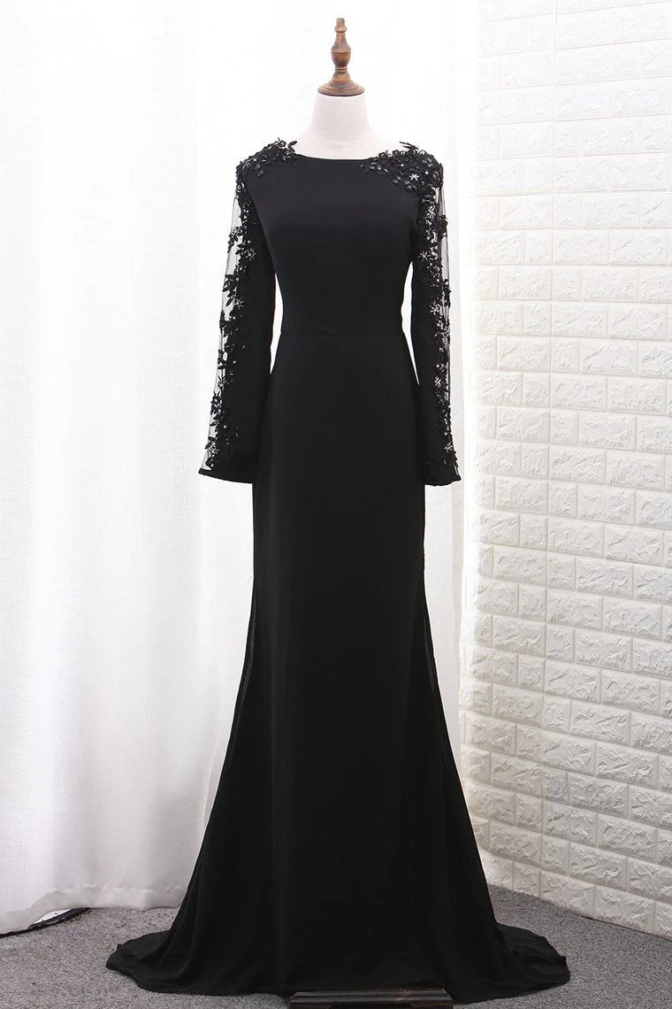Chiffon Long Sleeves Scoop Mermaid Party Dresses With Applique