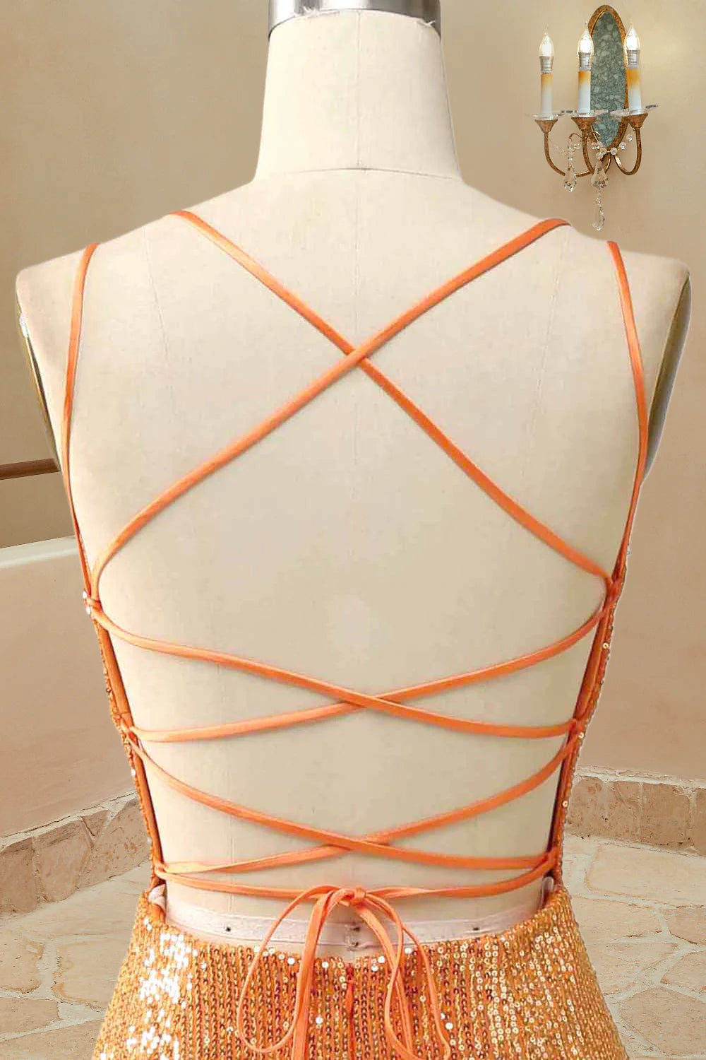 Glitter Spaghetti Straps Mermaid Sequins Prom Dresse