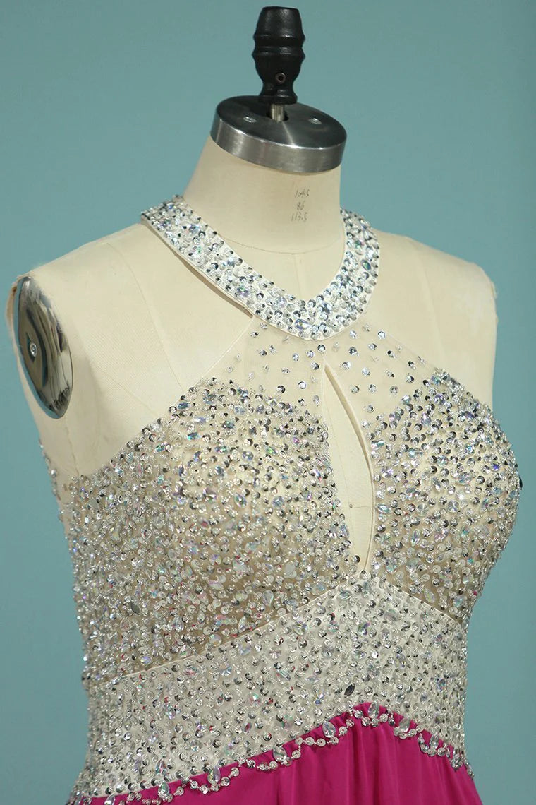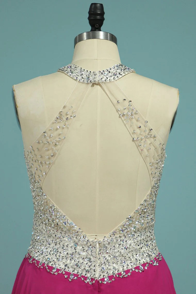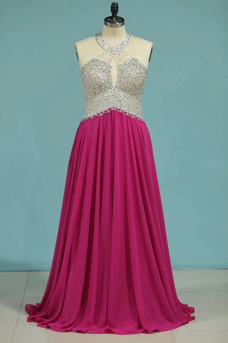 Gorgeous Party Dresses A Line Scoop Chiffon Sweep Train