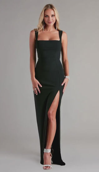 Gorgeous Sheath/Column Square Neck High Slit Sheath Floor-Length Maxi Dress Prom Dress