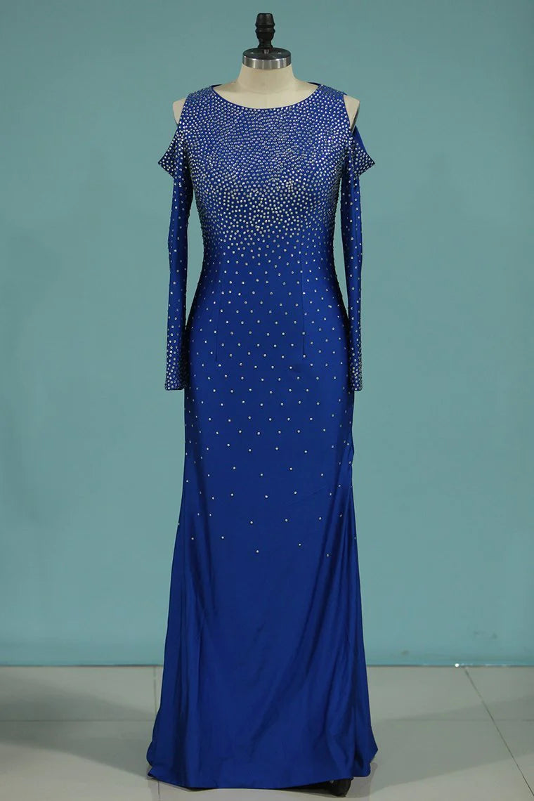 Long Sleeves Scoop Party Dresses Mermaid With Beading Spandex