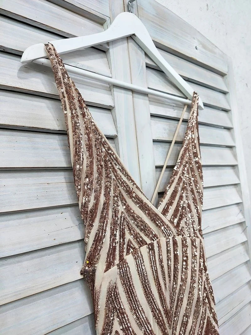 Mermaid Criss Cross Deep V Neck Gold Prom Dresses Sequins Long Prom Dresses