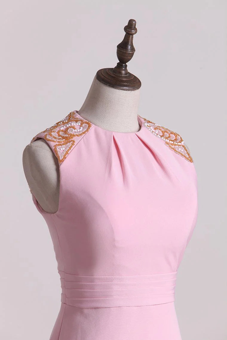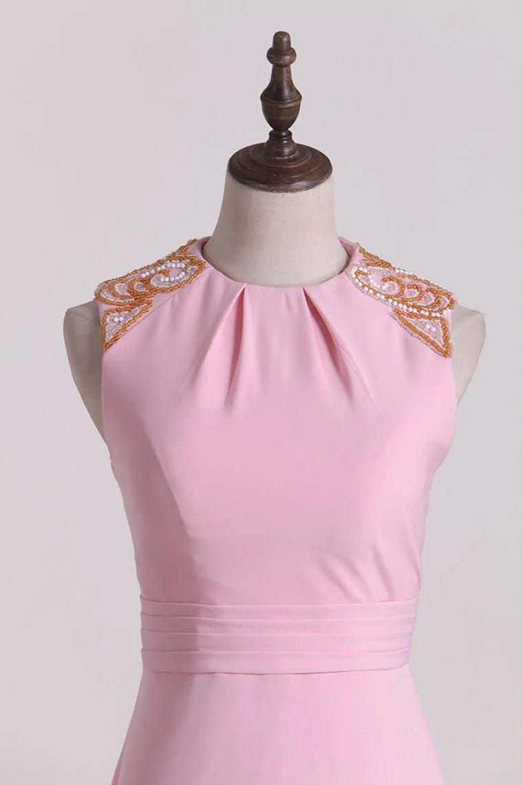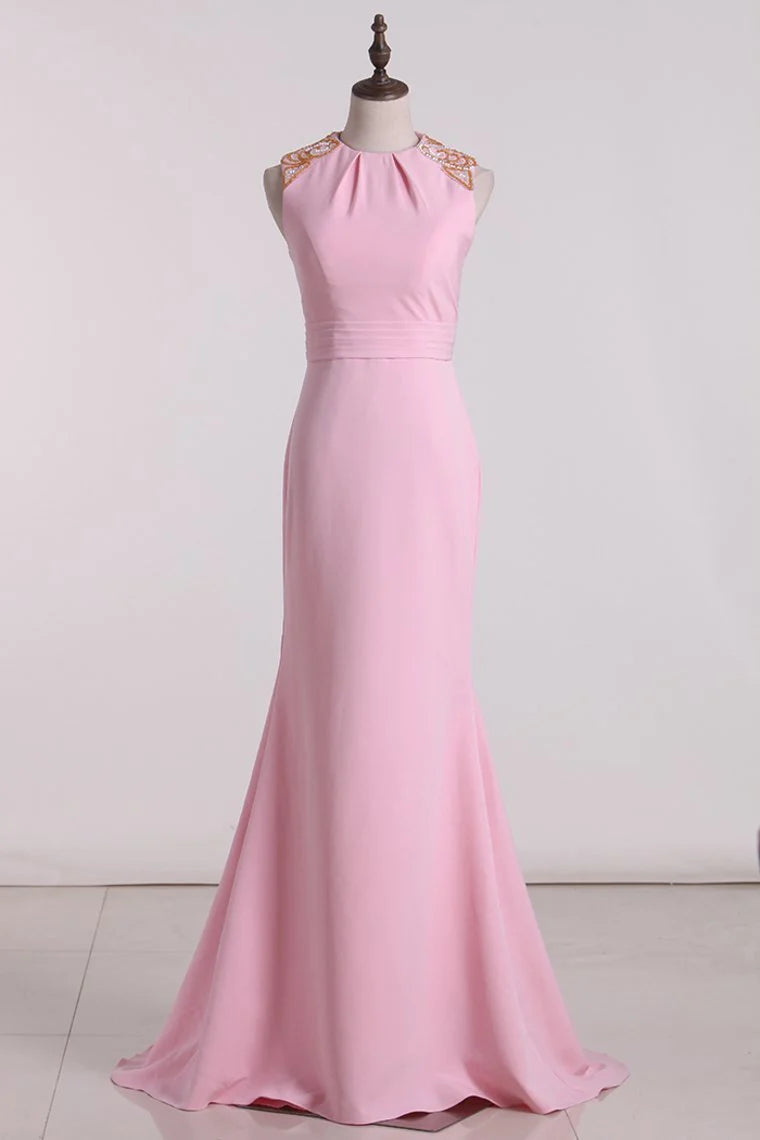 Mermaid Party Dresses Scoop Satin With Beading Sweep Train