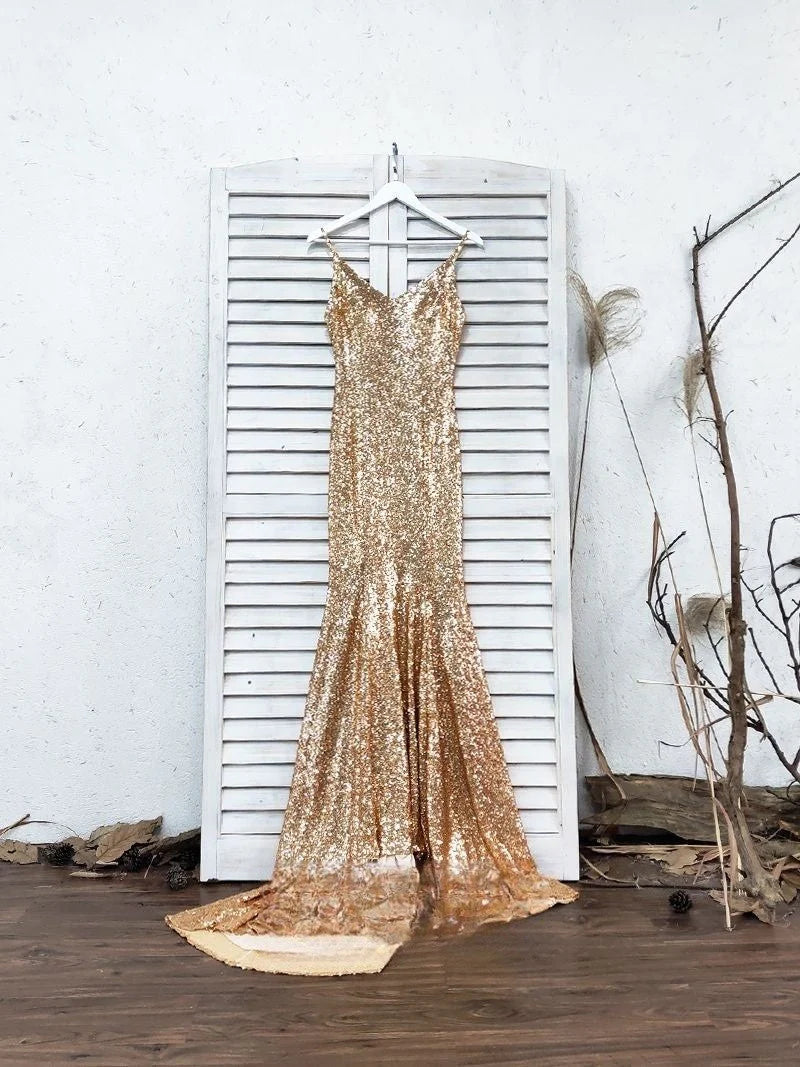 Mermaid Spaghetti Straps Prom Dresses Side Slit Backless Formal Dresses