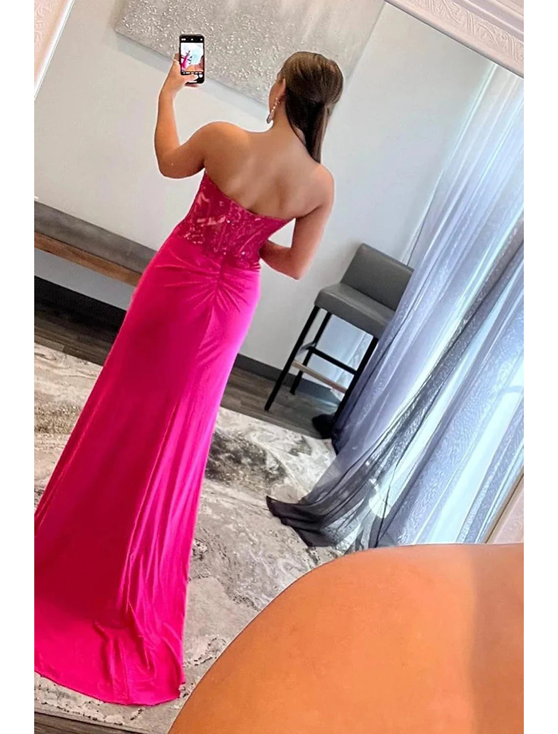 Mermaid / Trumpet Prom Dresses Empire Dress Formal Wedding Party Sweep / Brush Train Sleeveless Sweetheart Satin with Appliques