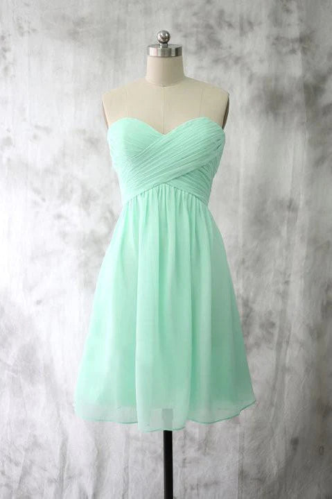 Mint Chiffon Party Dresses Short Bridesmaid Dresses