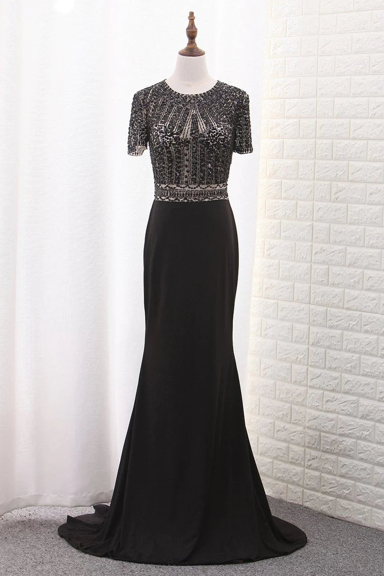 New Arrival Scoop Spandex Mermaid Beaded Bodice Party Dresses