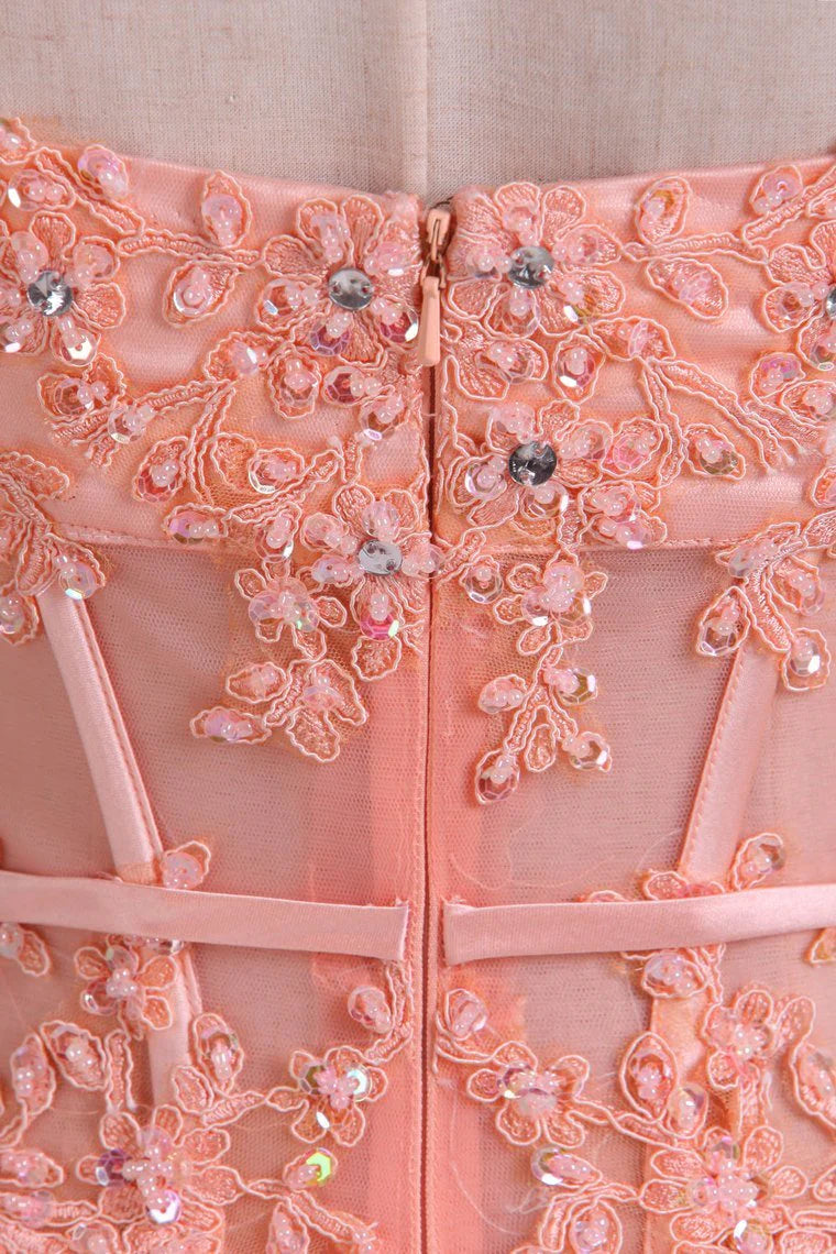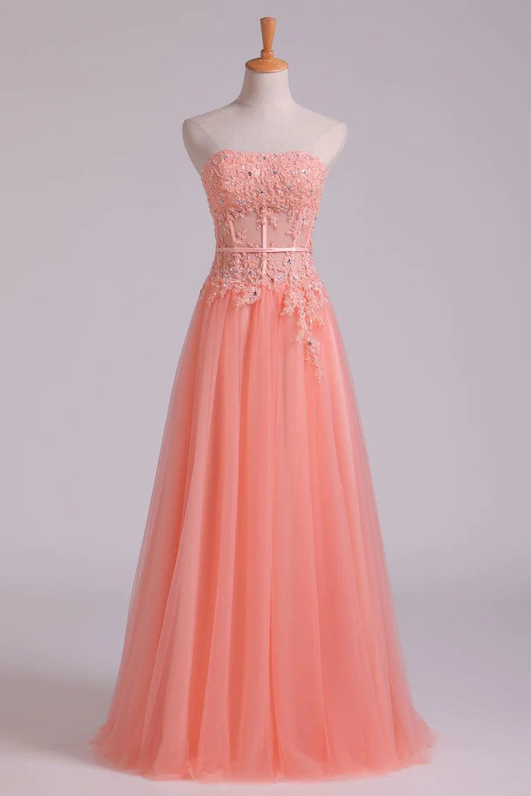 New Arrival Strapless A Line Party Dresses Tulle With Applique