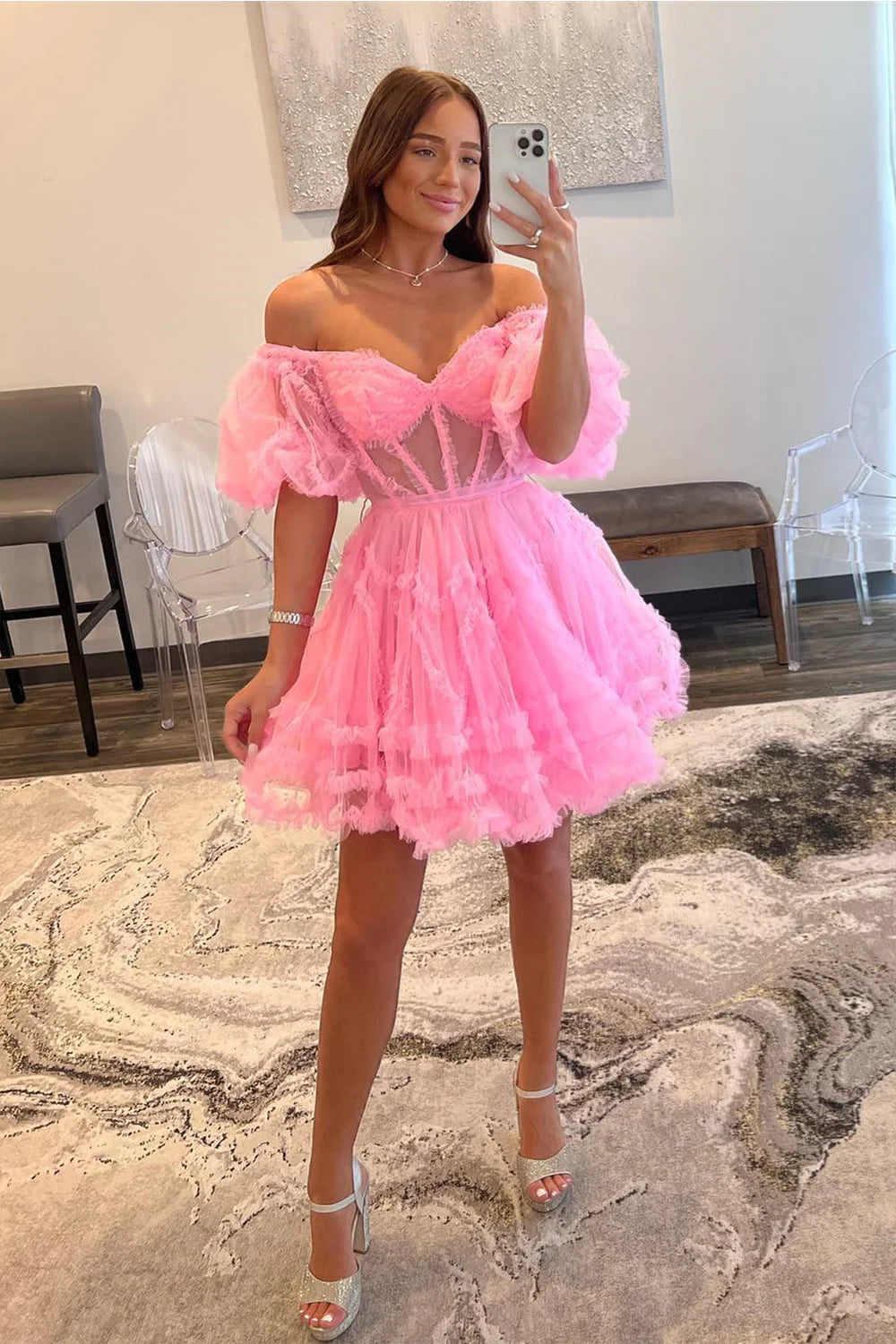 Off The Shoulder A Line Homecoming Dresses Tulle With Ruffles