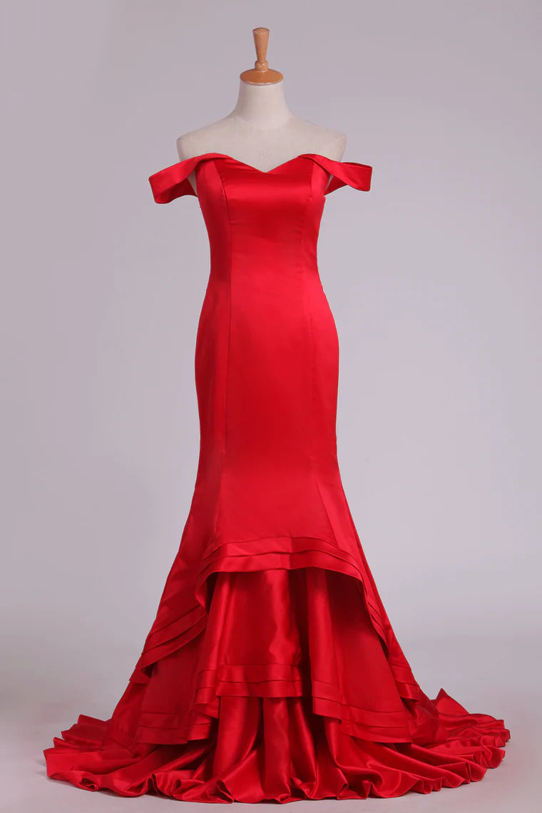 Off The Shoulder Party Dresses Satin Sweep Train Mermaid