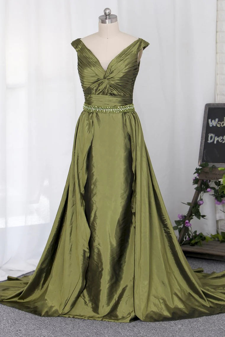 Off The Shoulder Party Dresses Taffeta Sweep Train Detachable
