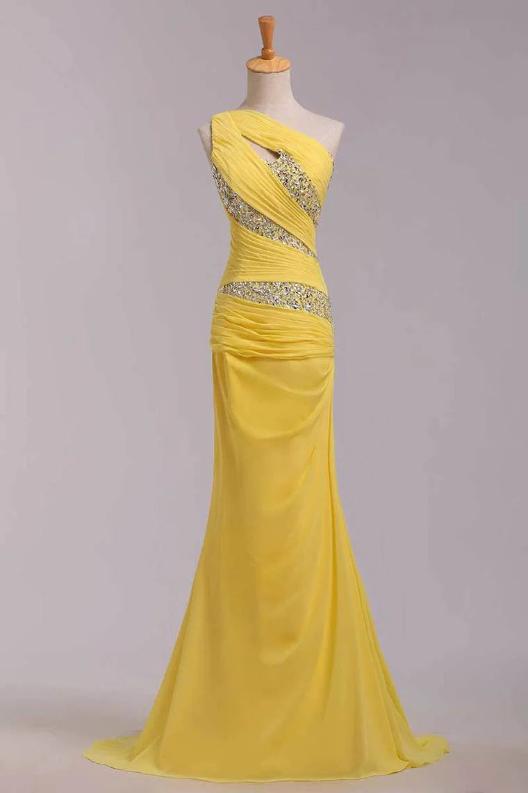One Shoulder Mermaid Court Train Chiffon Party Dresses