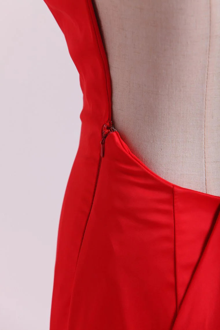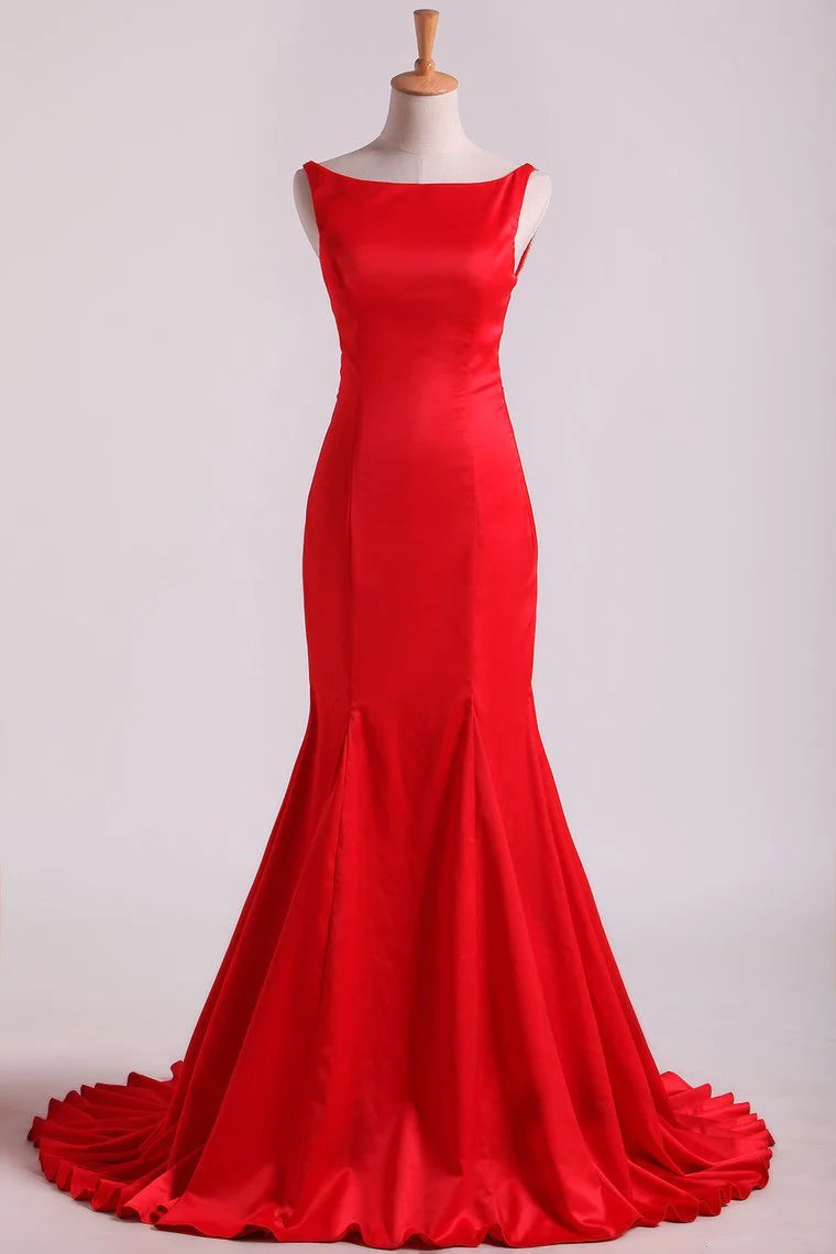 Open Back Party Dresses Stretch Satin Scoop Sweep Train