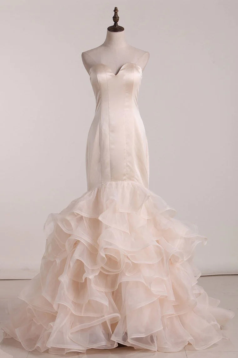 Organza Party Dresses Sweetheart Mermaid Sweep Train