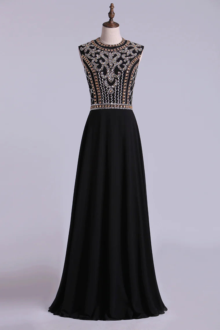 Party Dresses A-Line High-Neck Floor-Length Chiffon