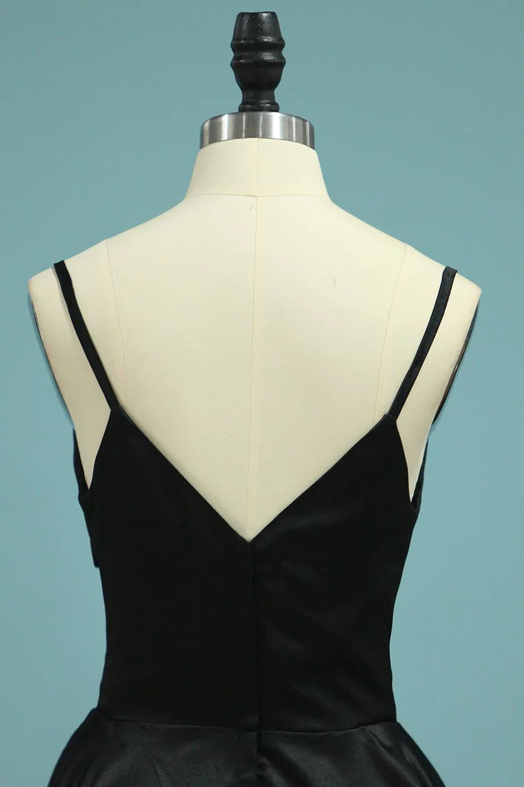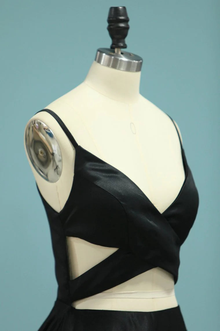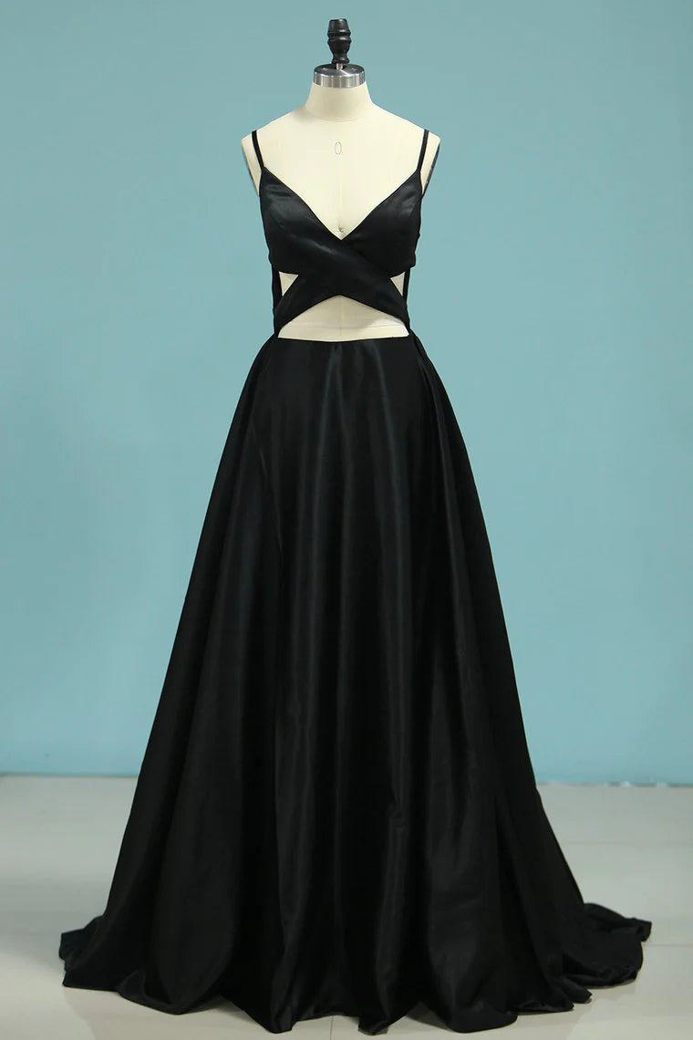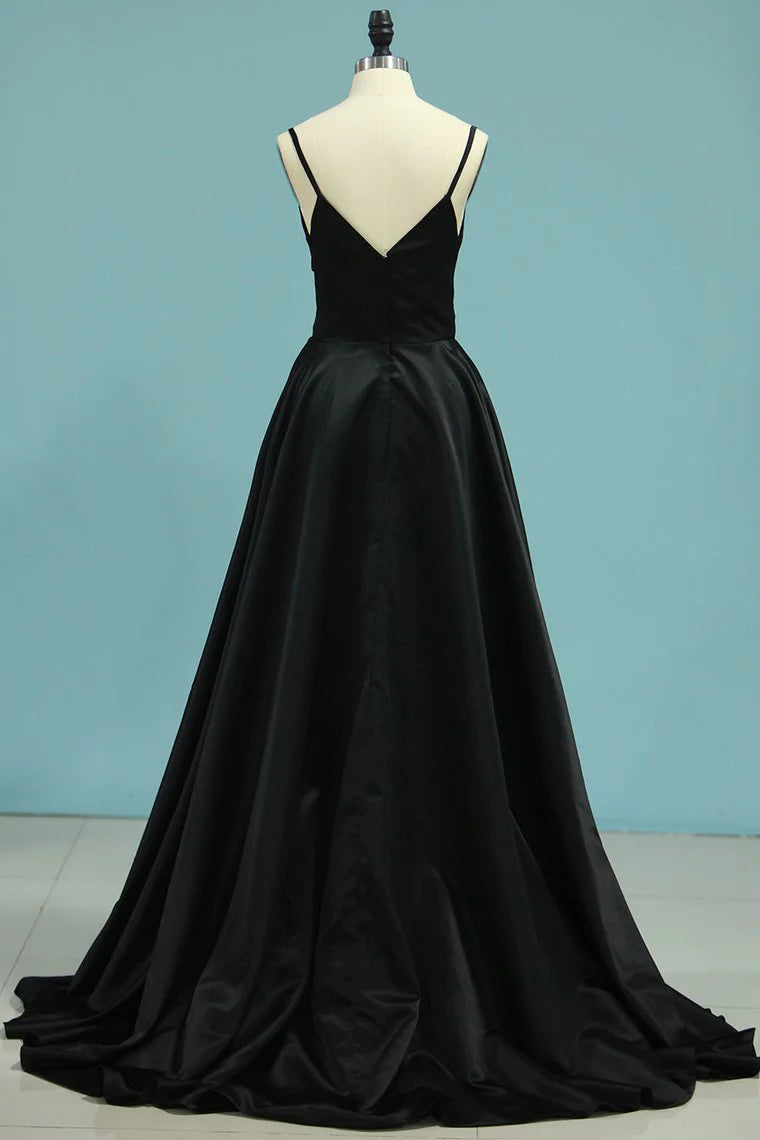 Party Dresses A Line Spaghetti Straps Satin Sweep Train