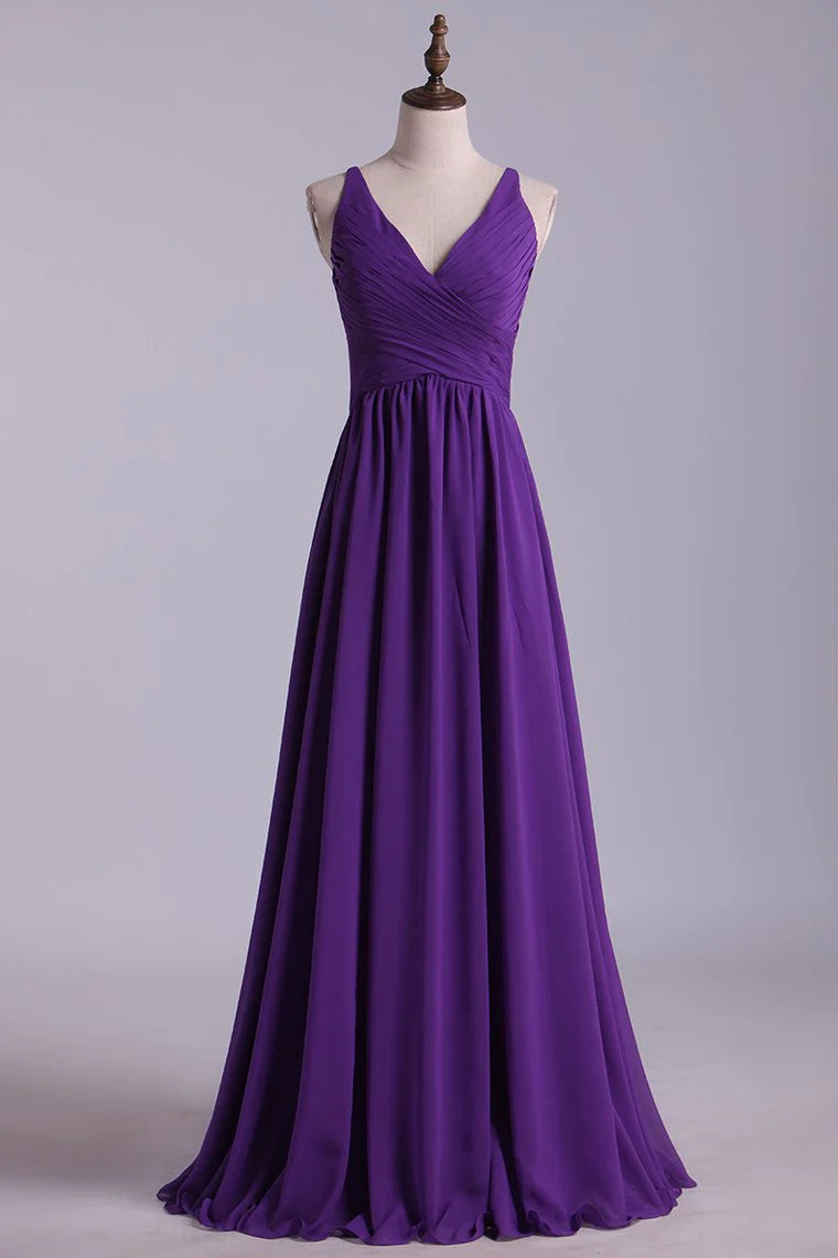 Party Dresses A Line V Neck Floor Length Chiffon New