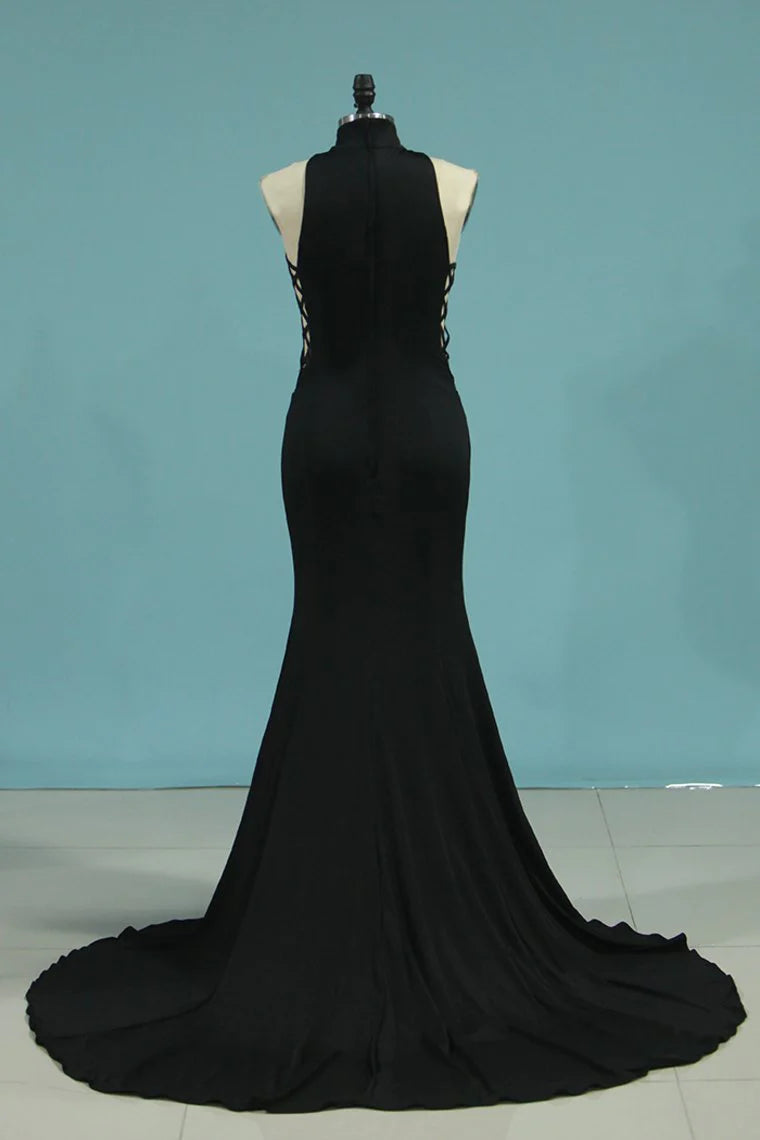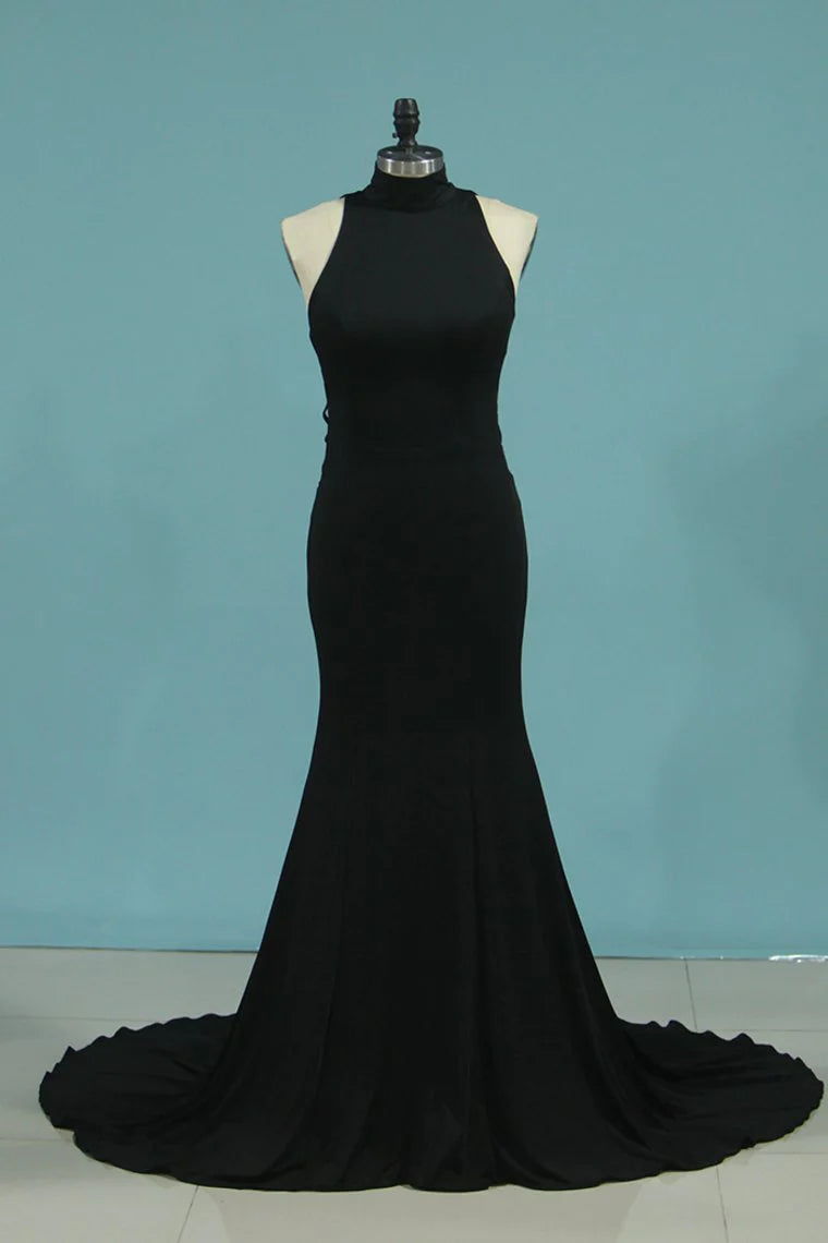 Party Dresses High Neck Mermaid Spandex Sweep Train