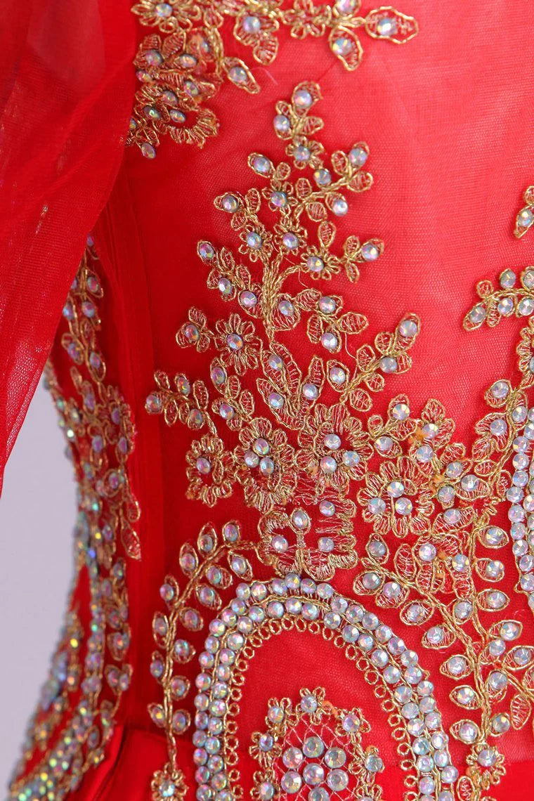 Party Dresses Long Sleeves Scoop Mermaid Beaded Court Train