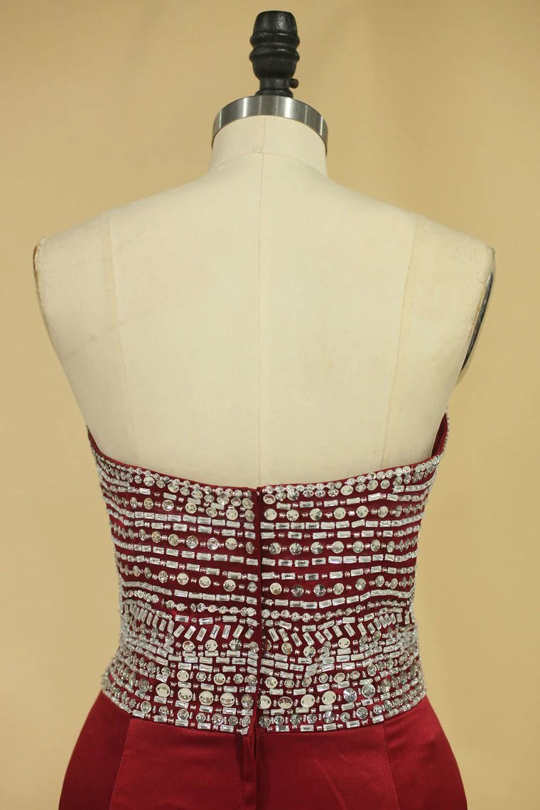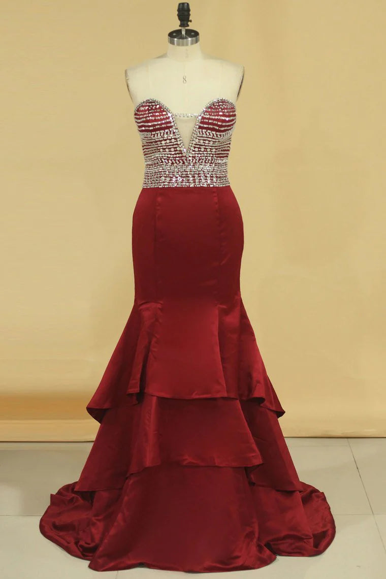 Party Dresses Mermaid Sweetheart Beaded Bodice Satin Sweep Train