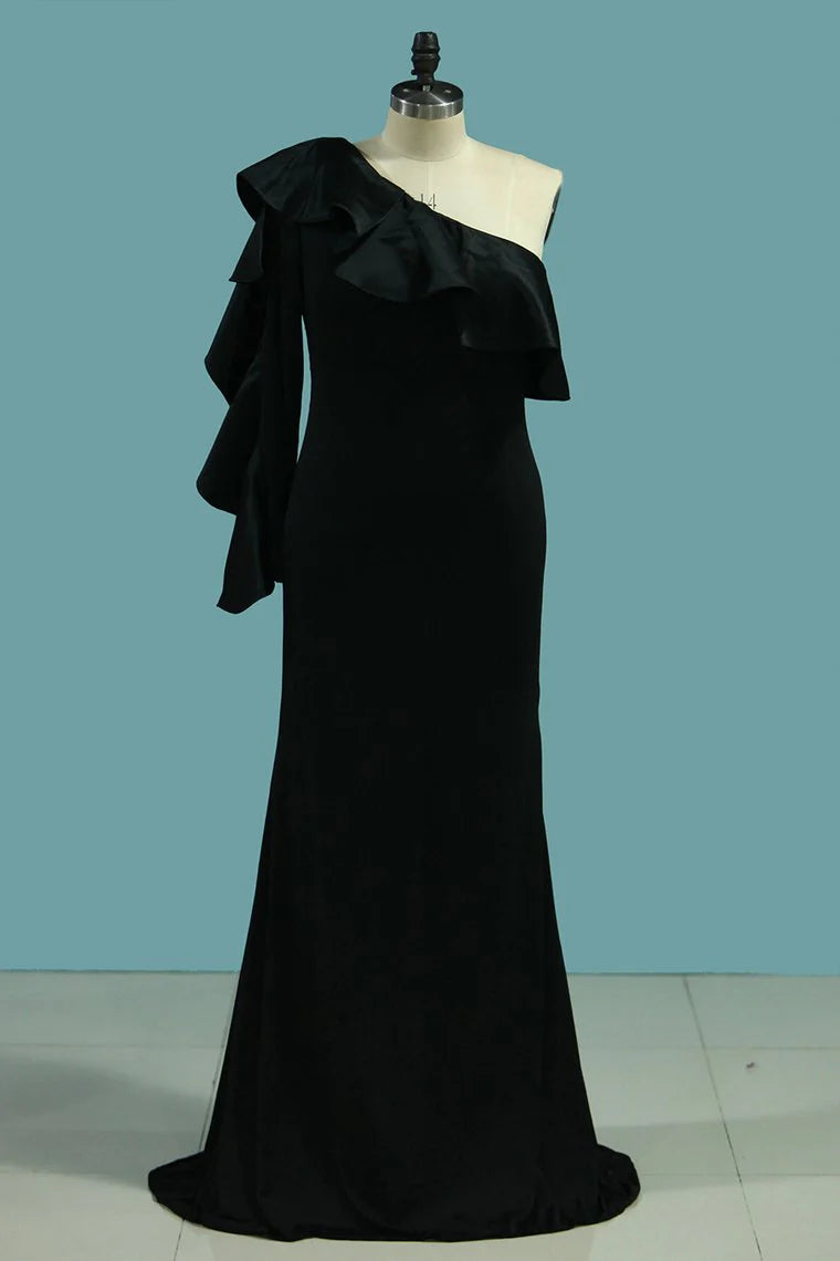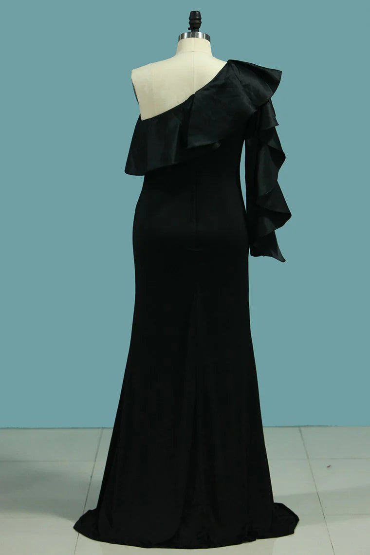 Party Dresses One Sleeve Mermaid Satin Sweep Train