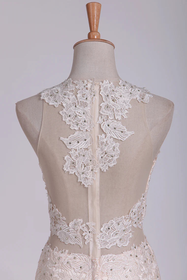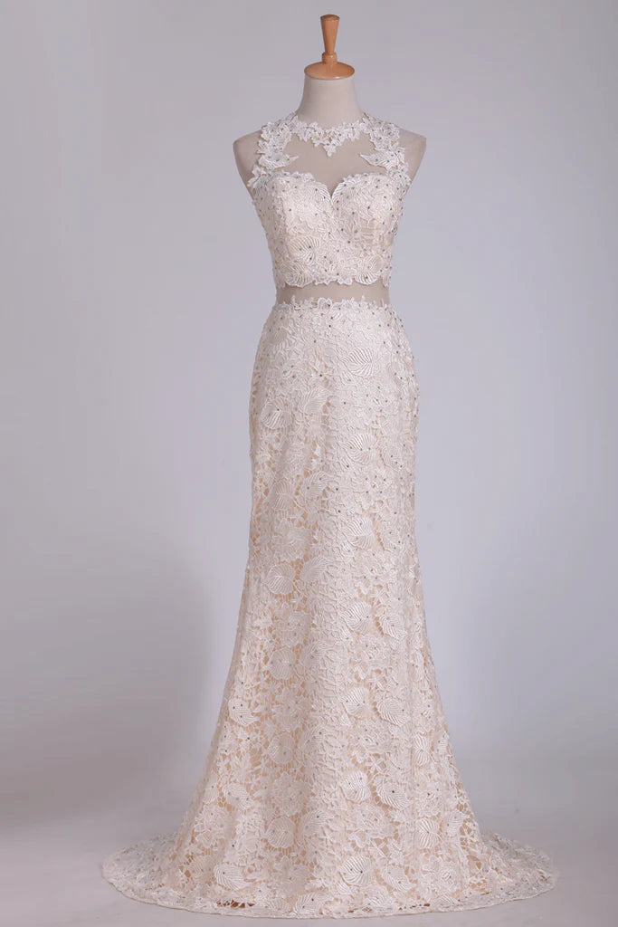 Party Dresses Scoop Mermaid With Beads Sweep Train Lace