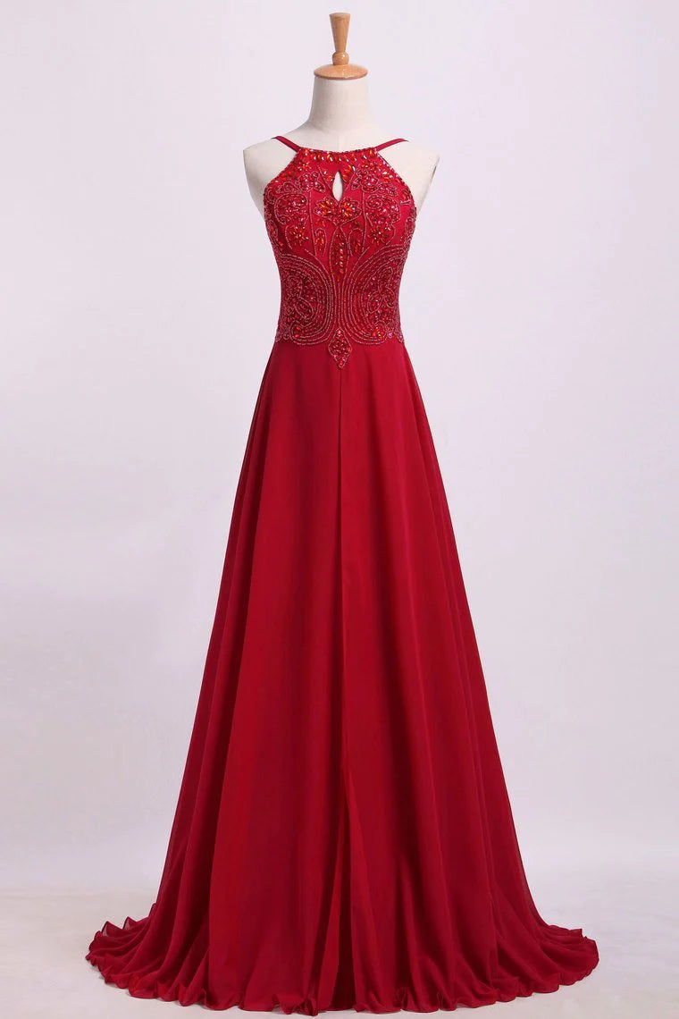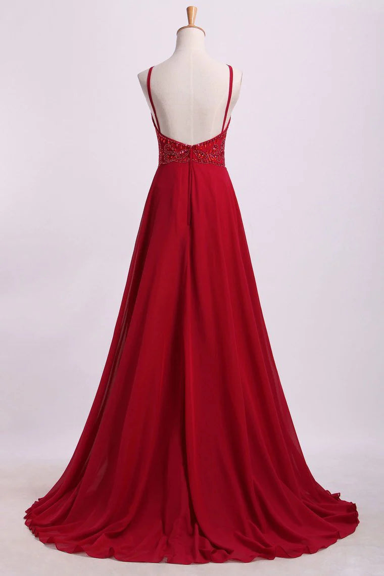 Party Dresses Spaghetti Straps Beaded Bodice A-Line Chiffon
