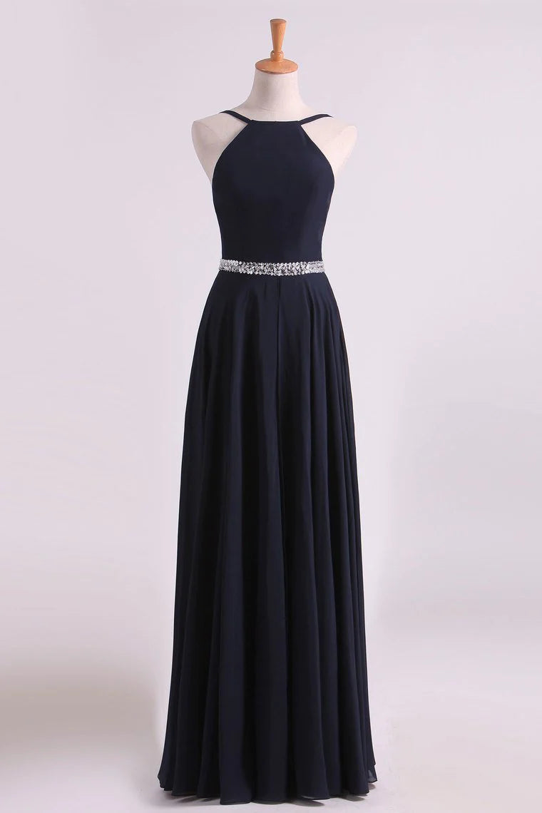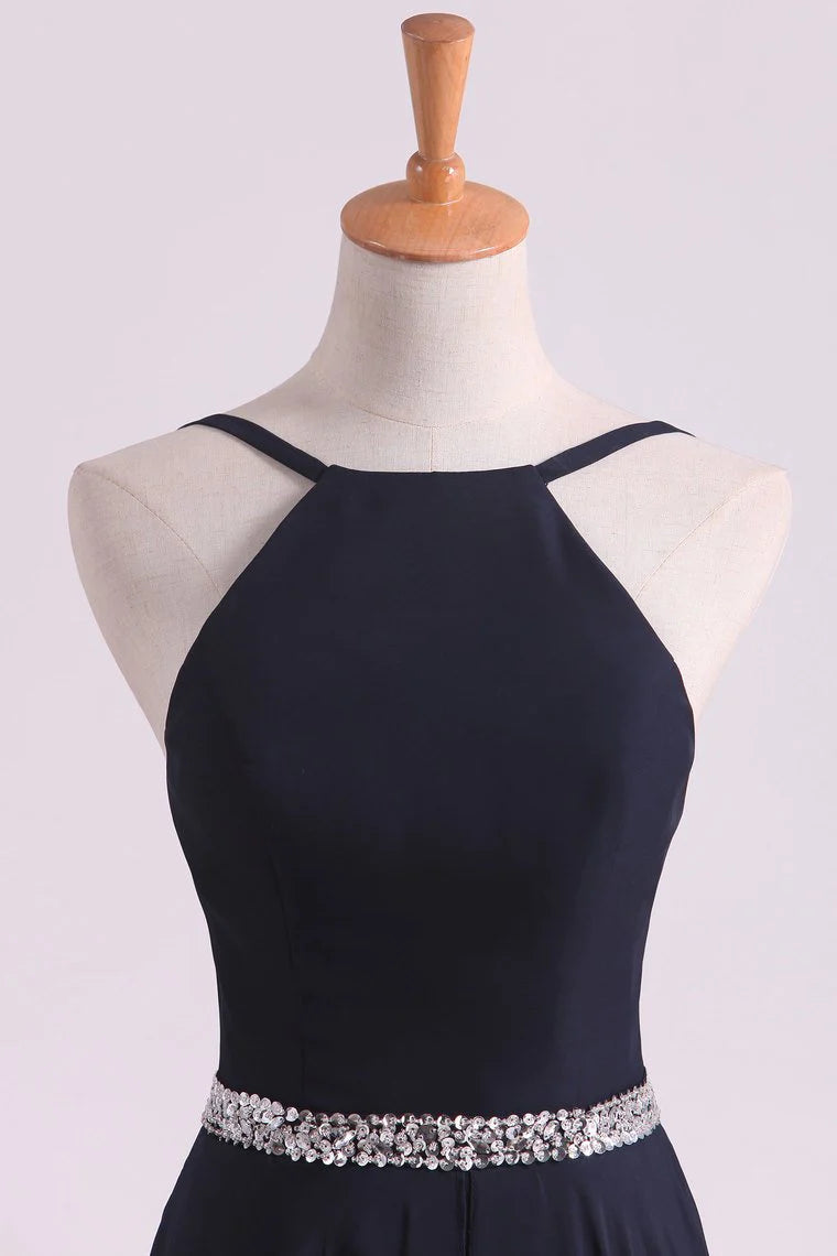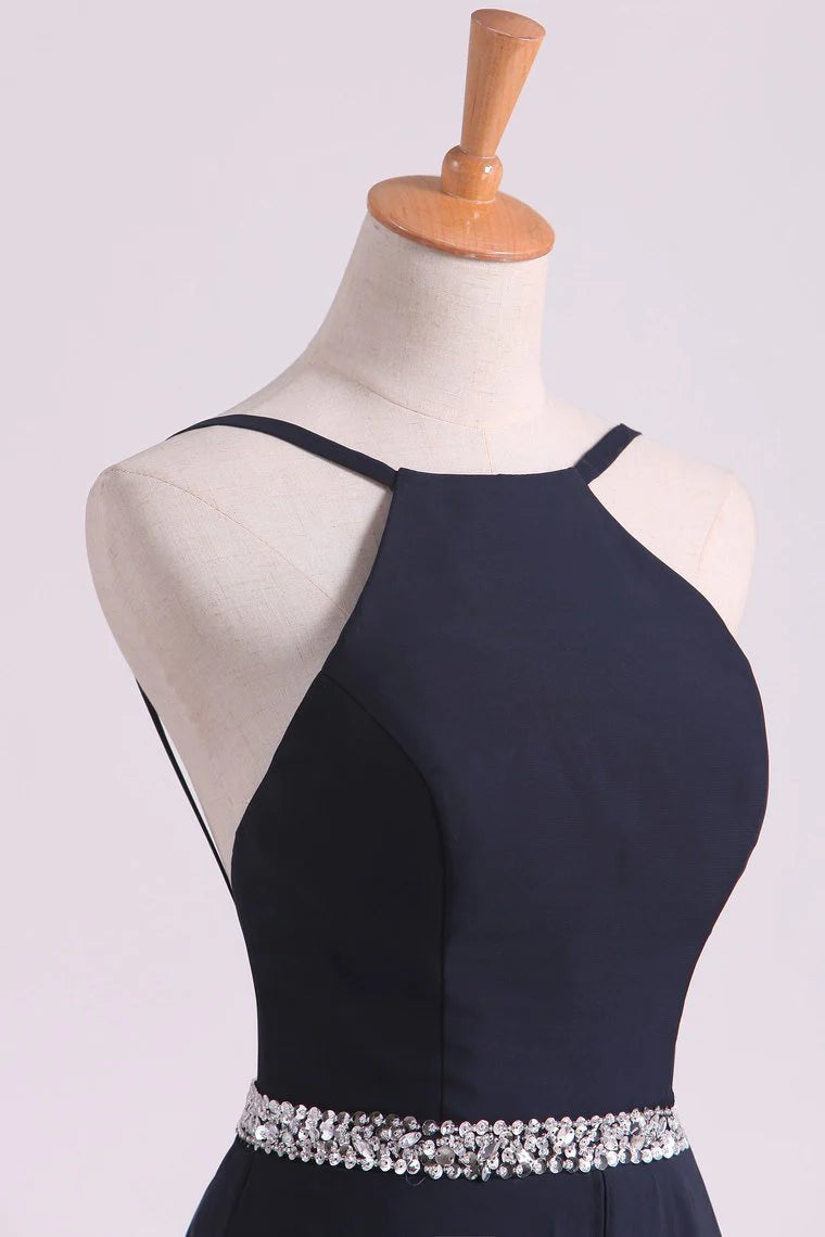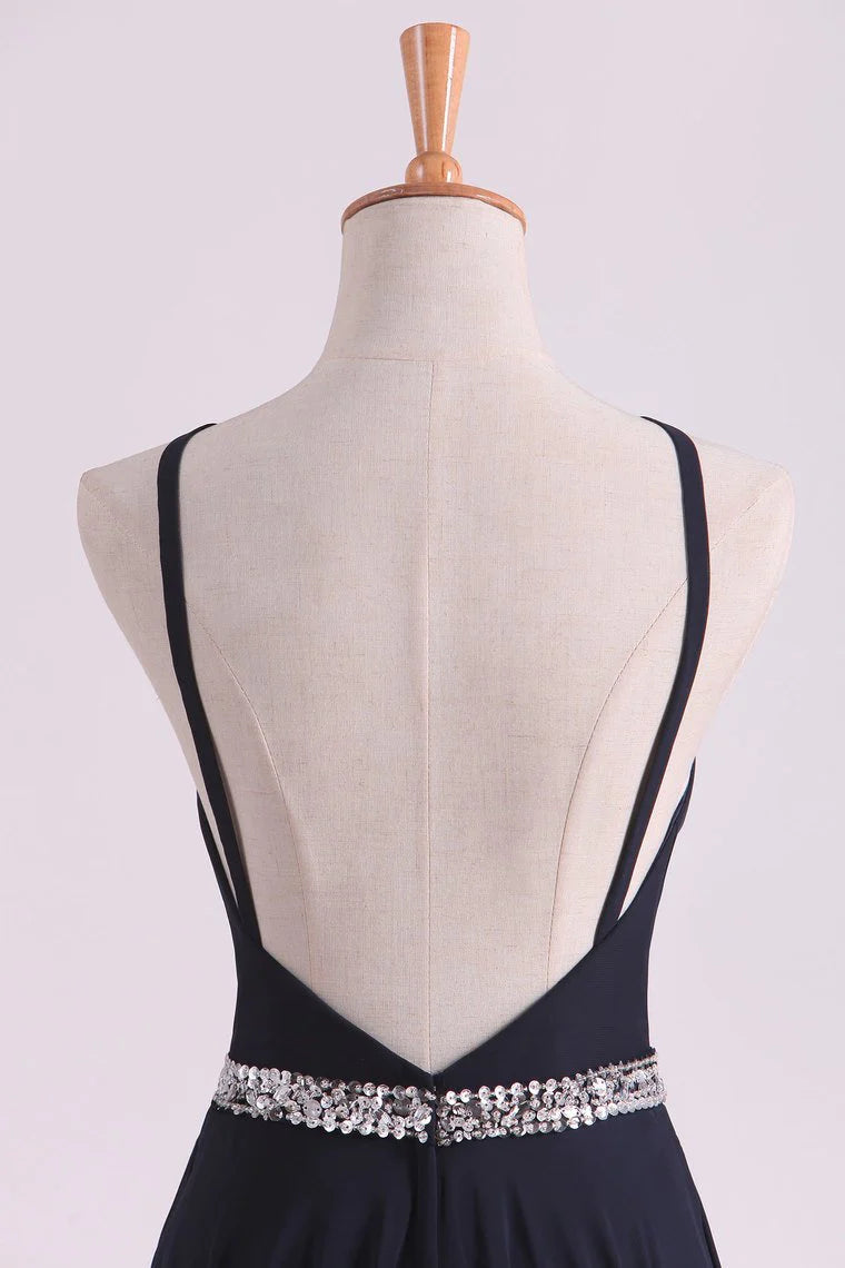 Party Dresses Spaghetti Straps Beaded Waistline Chiffon Open Back