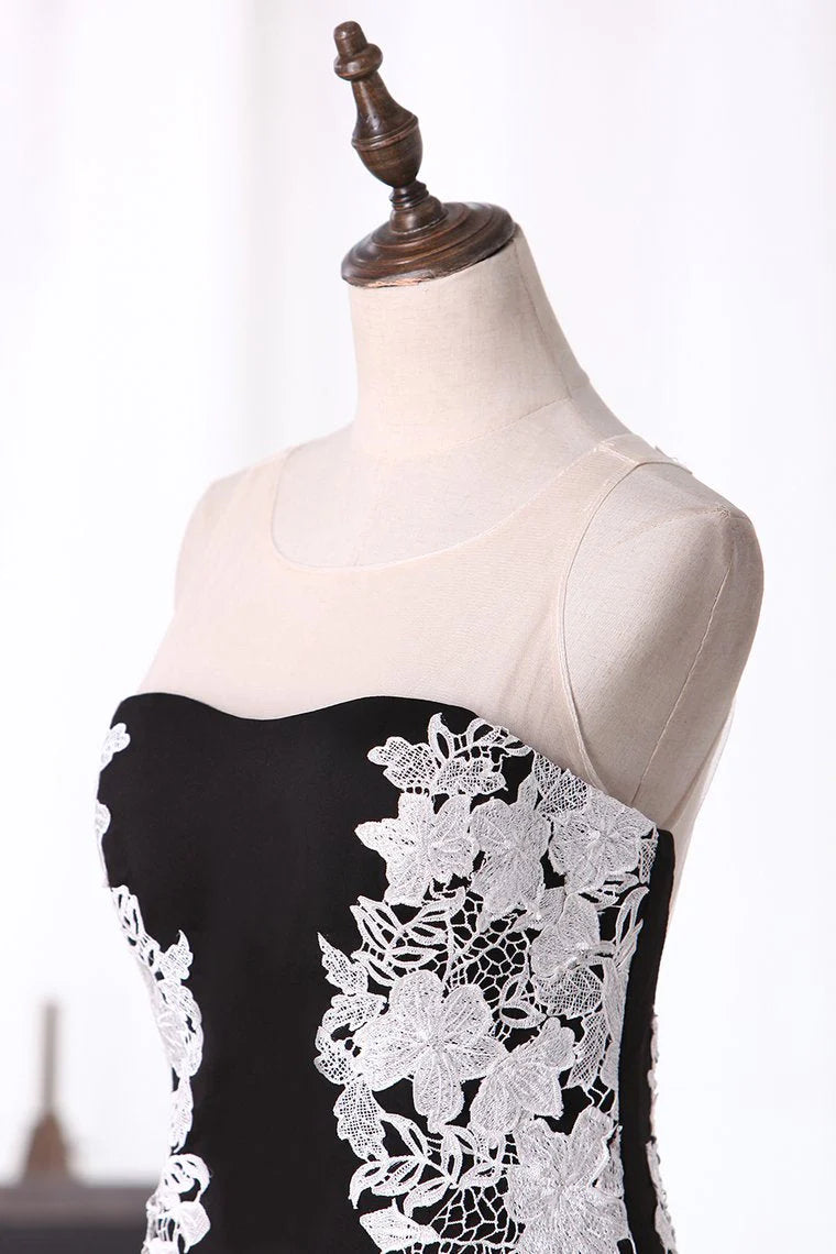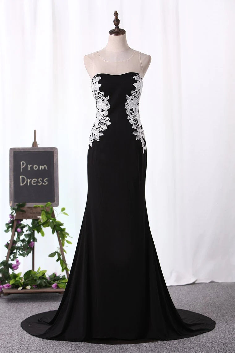Party Dresses Spandex Scoop Mermaid With Applique Sweep Train