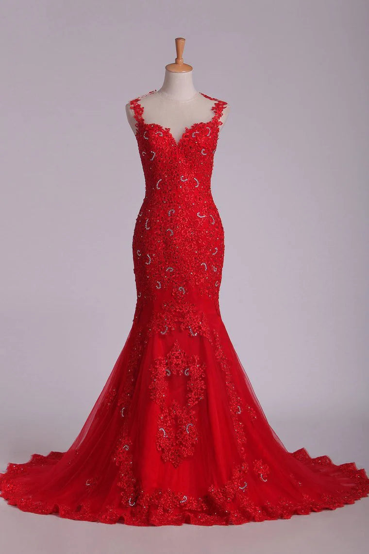Party Dresses Straps Mermaid Tulle With Applique Sweep Train