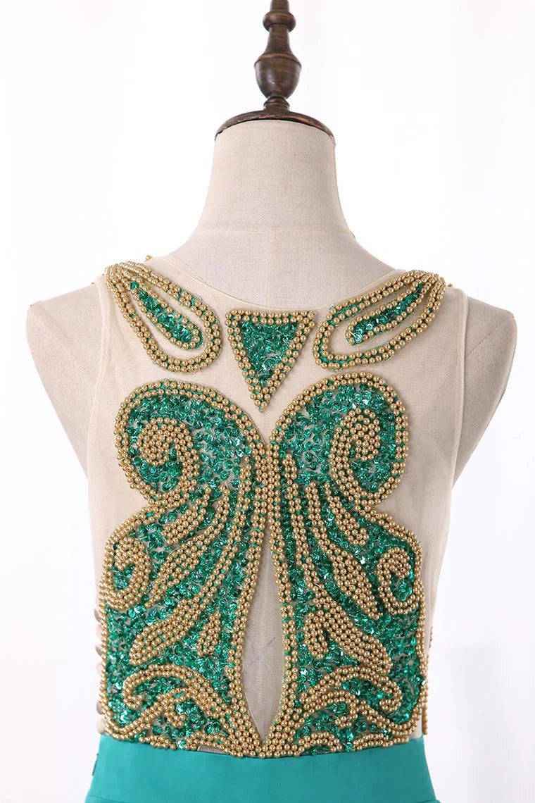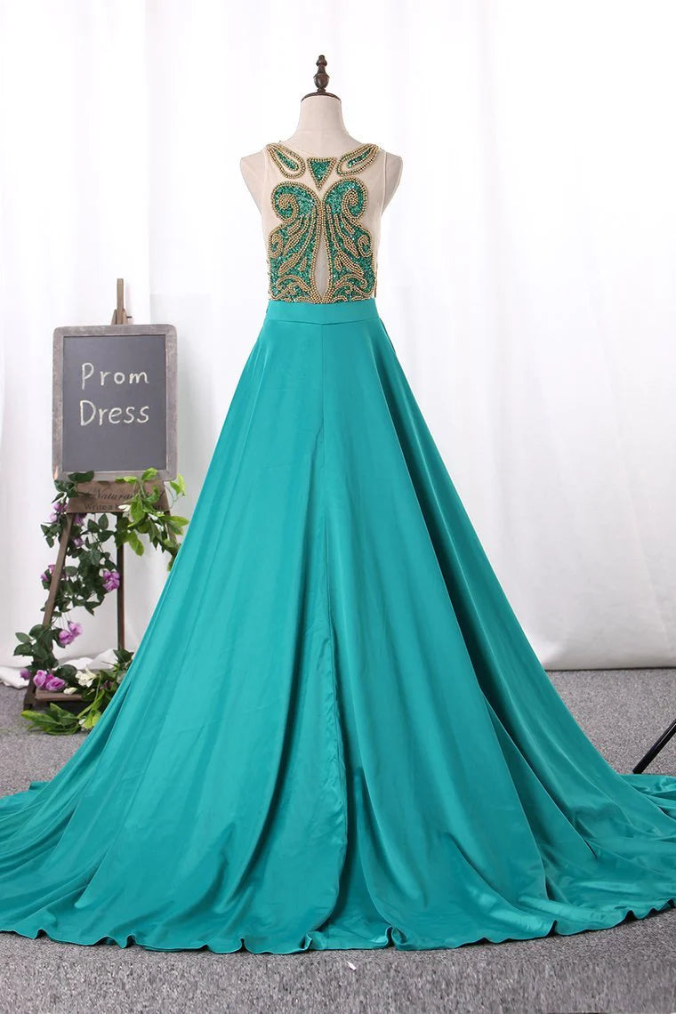 Party Dresses Stretch Satin A Line Scoop Beaded Bodice