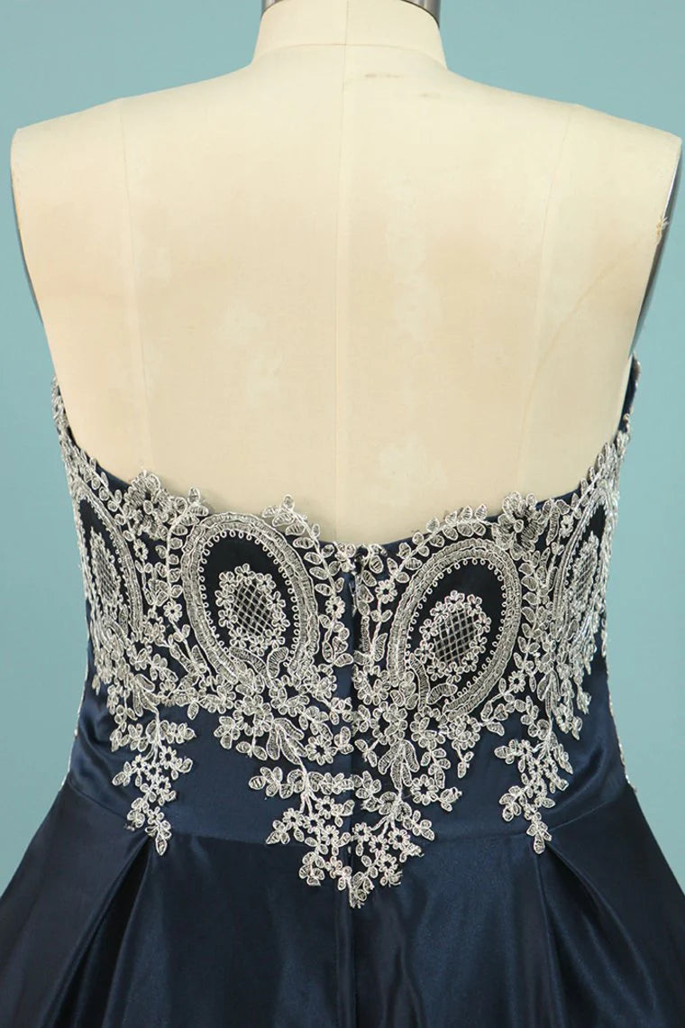 Party Dresses Sweetheart Satin A-Line With Applique Zipper Back